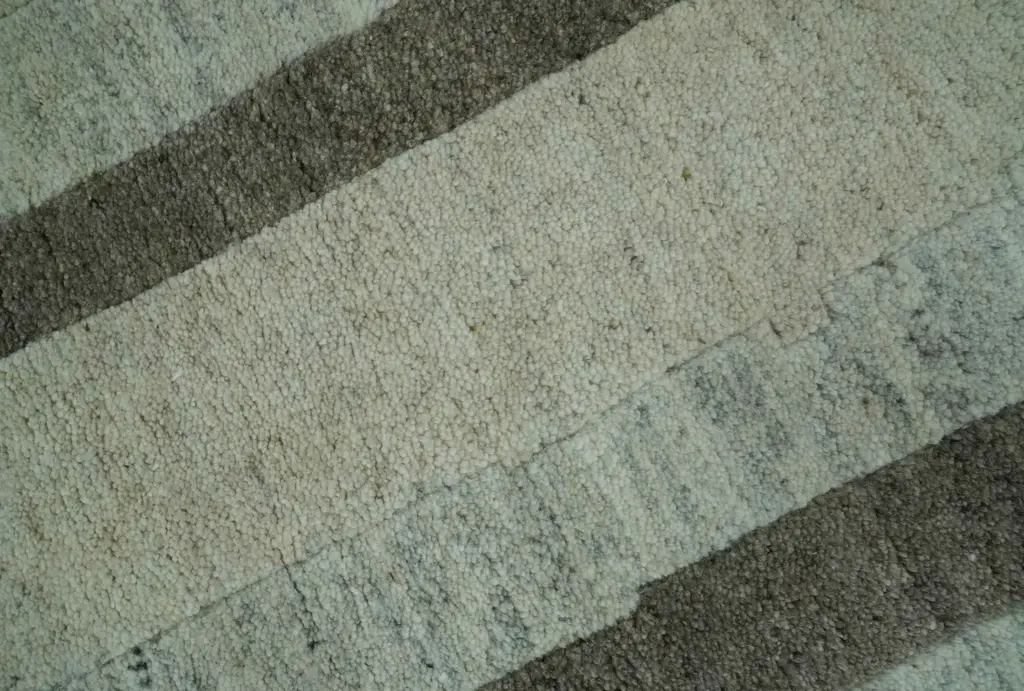 Custom Made Modern Geometrical Silver, Ivory And Charcoal Hand Knotted Wool Area Rug - 2.6x9
