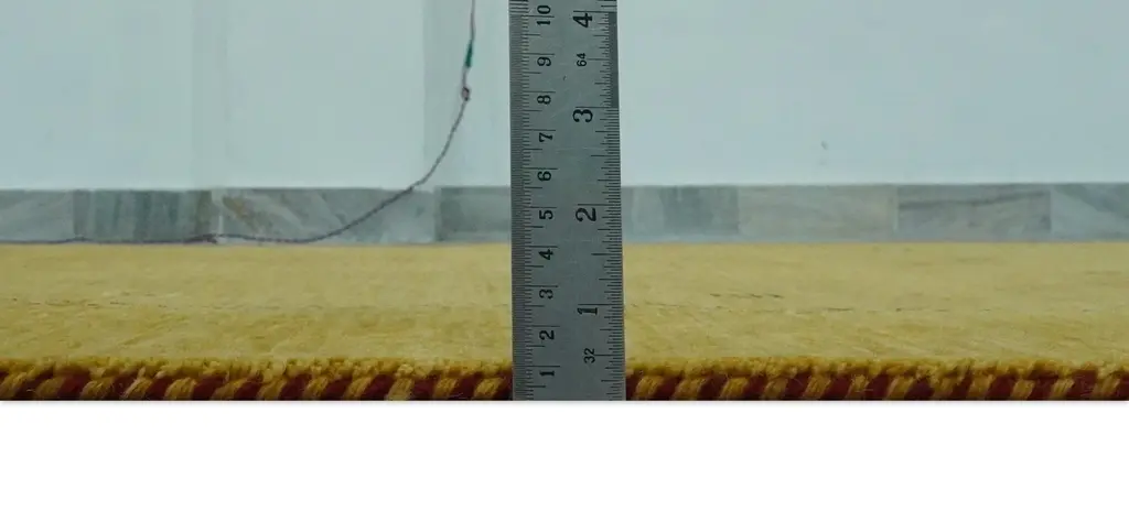 This luxurious rug features a warm, golden mustard hue that exudes sophistication and warmth. Its minimalist design is punctuated by small, subtle geometric motifs in muted tones. The border is delicately adorned with a series of intricate, interlocking chevron patterns that provide an elegant frame. Crafted from plush, high-quality fibers, the rug boasts a soft, inviting texture, making it perfect for adding a touch of understated glamour to any upscale living space. Product Details Color: Mustard Design: Modern Tribal Design Material: Wool Construction: Hand-loom Availability: All sizes, Made to order in 30-45 days Care Guide Keep dry and away from water exposure Clean dust by vacuuming and shaking outdoors weekly Trim loose threads with scissors - never pull them Blot spills gently with clean white cloth; avoid chemical cleaners Place protective pads under furniture legs