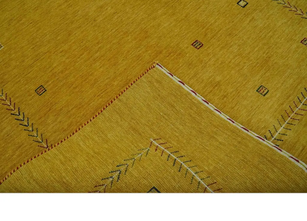 Custom Made Mustard Modern Tribal Design Wool Area Rug - 3X12