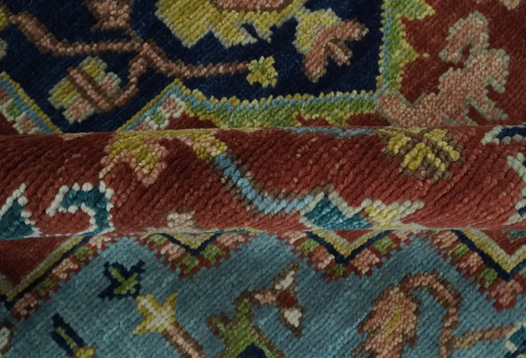 This multi-size Rust and Blue Traditional Antique Style Hand Knotted Wool Area Rug is a classic addition to any home. It features traditionally-woven patterns in rust and blue colors and hand-knotted wool construction for lasting quality. Make it the cornerstone of your decor and enjoy its antique beauty. Hand-Knotted Made with Wool Made to Order in 30-60 Days Color : Rust and Blue Perfect fit for Living Room, Dining Area, or Bedroom This specific rug is made in India, in the city of Bhadohi. Bhadohi is one of the biggest rug manufacturing cities. Carpet weaving in the region dates back to the 16th century during the reign of Akbar. The skilled artisans of Bhadohi have been carrying the tradition of rug-making for centuries. USERS GUIDE Avoid prolonged moisture Vacuum regularly and/or shake to remove dust Do not pull any loose threads. Use scissors to simply cut the ends Blot spills immediately with a white cloth. Harsh chemicals may damage or fade the rug Use rug protectors under heavy furniture