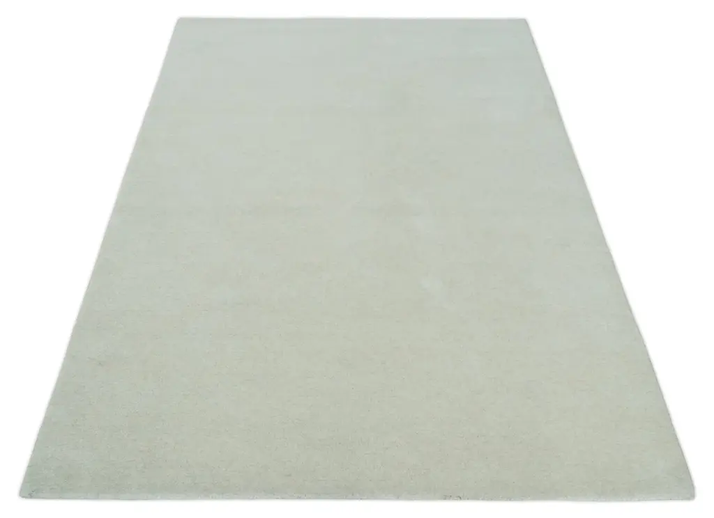 Custom Made Solid Ivory White Hand Tufted Layering Rug - 5X8