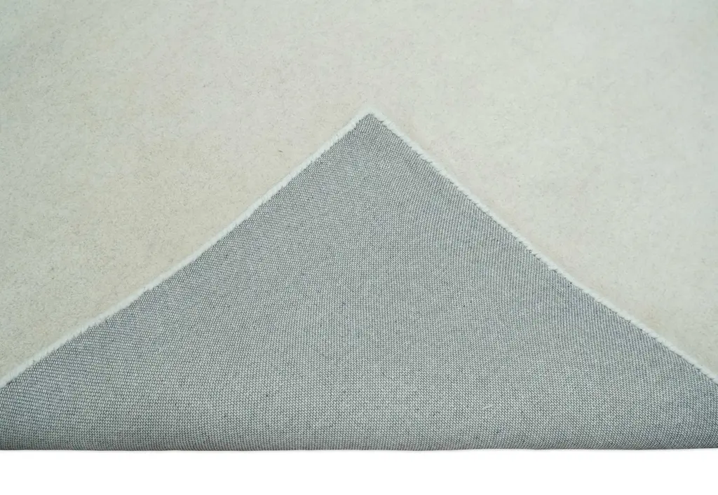 This Hand-Tufted Area Rug has been made with fine natural wool. The solid plain natural self-shaded blended wool with single-tone colors gives a classic luxury and elegant look to your space. Hand-Tufted rugs are woven using a specialized mechanical tufting gun. The rugs are typically higher in pile. Hand-Tufted rug Color: Ivory Made with fine natural wool OTHER SIZES ARE MADE TO ORDER 30-45 Days Contact us for custom sizes USERS GUIDE Avoid prolonged moisture Vacuum regularly and/or shake to remove dust Do not pull any loose threads. Use scissors to simply cut the ends Blot spills immediately with a white cloth. Harsh chemicals may damage or fade the rug Use rug protectors under heavy furniture