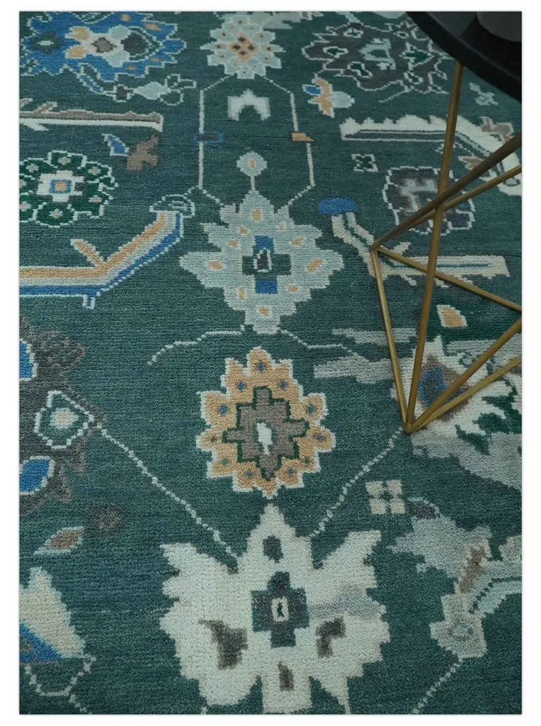 This Custom Made Teal and Silver Traditional Oriental Oushak wool Area Rug is expertly crafted and adds a touch of sophistication to any room. Made from luxurious wool, it offers both comfort and durability. Bring the elegance of traditional oriental design into your home with this beautifully handcrafted rug. Hand-Knotted Made with Wool Made to Order in 30-45 Days Color: Teal and Silver This specific rug is made in India, in the city of Bhadohi. Bhadohi is one of the biggest rug manufacturing cities. Carpet weaving in the region dates back to the 16th century during the reign of Akbar. The skilled artisans of Bhadohi have been carrying the tradition of rug-making for centuries. USERS GUIDE Avoid prolonged moisture Vacuum regularly and/or shake to remove dust Do not pull any loose threads. Use scissors to simply cut the ends Blot spills immediately with a white cloth. Harsh chemicals may damage or fade the rug Use rug protectors under heavy furniture