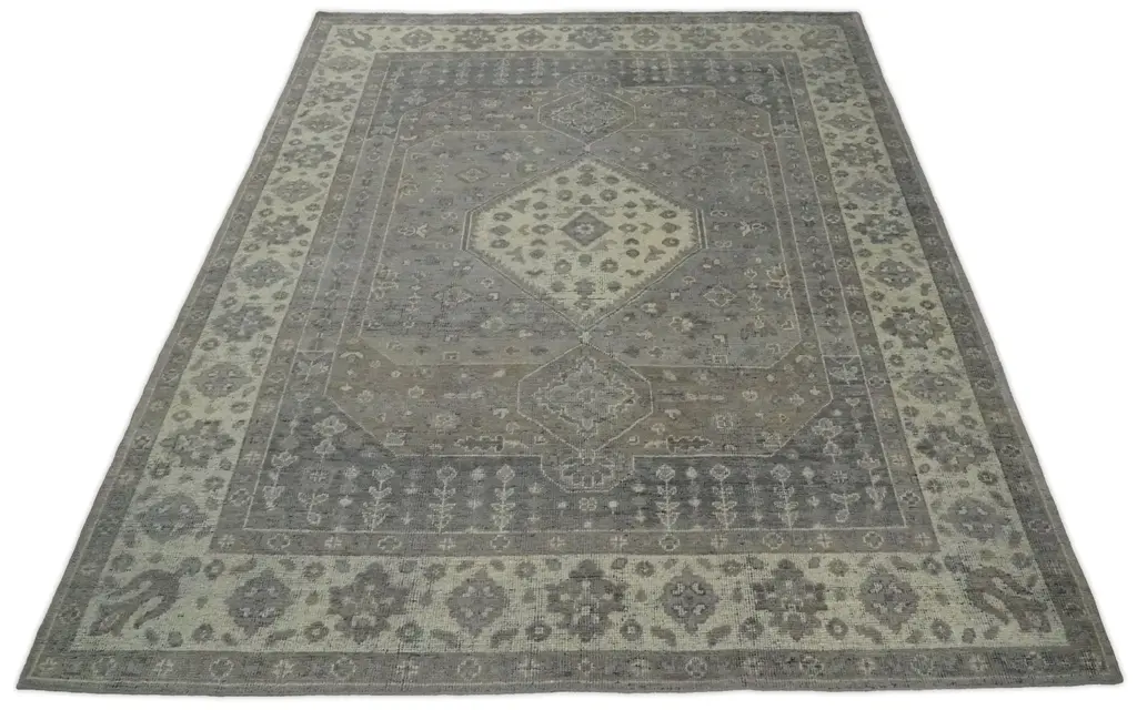 This Hand-Knotted Rug has been Made with Handspun Wool. The beautiful colors of the rug carry a legacy of the heirloom rug. The traditional design of the rug completes your space without making it look busy. Hand-Knotted rugs are durable and can last for decades if treated right. MADE TO ORDER IN 30-45 DAYS Hand-Knotted Rug Made with Wool Color: Gray and Beige Made with 30 knots per square inch This specific rug is made in India, in the city of Bhadohi. Bhadohi is one of the biggest rug manufacturing cities. Carpet weaving in the region dates back to the 16th century during the reign of Akbar. The skilled artisans of Bhadohi have been carrying the tradition of rug-making for centuries. USERS GUIDE Avoid prolonged moisture Vacuum regularly and/or shake to remove dust Do not pull any loose threads. Use scissors to simply cut the ends Blot spills immediately with a white cloth. Harsh chemicals may damage or fade the rug Use rug protectors under heavy furniture