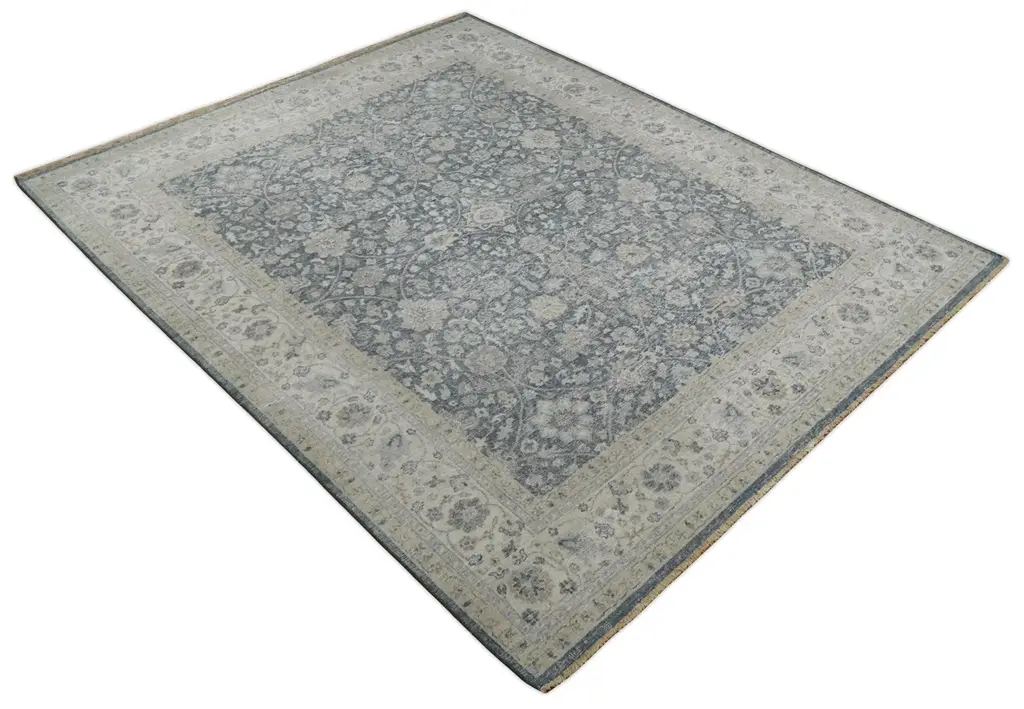 This hand-knotted rug has been made with the fine Handspun blended Wool, and has the special oxidized wash for a low sheer and abrash look. The Vintage design of the rug gives the room a classic look and feel. Hand-knotted wool rug. Made with fine Handspun blended Wool Color: Blue and Beige Oxidized Finish for low textured Distressed pile NOTE -4x6, 5x8 and 6x9 is made to order in 60 days, and 9x12 is made to order in 90 days. USERS GUIDE Avoid prolonged moisture. Vacuum regularly and/or shake to remove dust. Do not pull any loose threads. Use scissors to simply cut the ends. Blot spills immediately with a white cloth. Harsh chemicals may damage or fade the rug. Use rug protectors under heavy furniture.