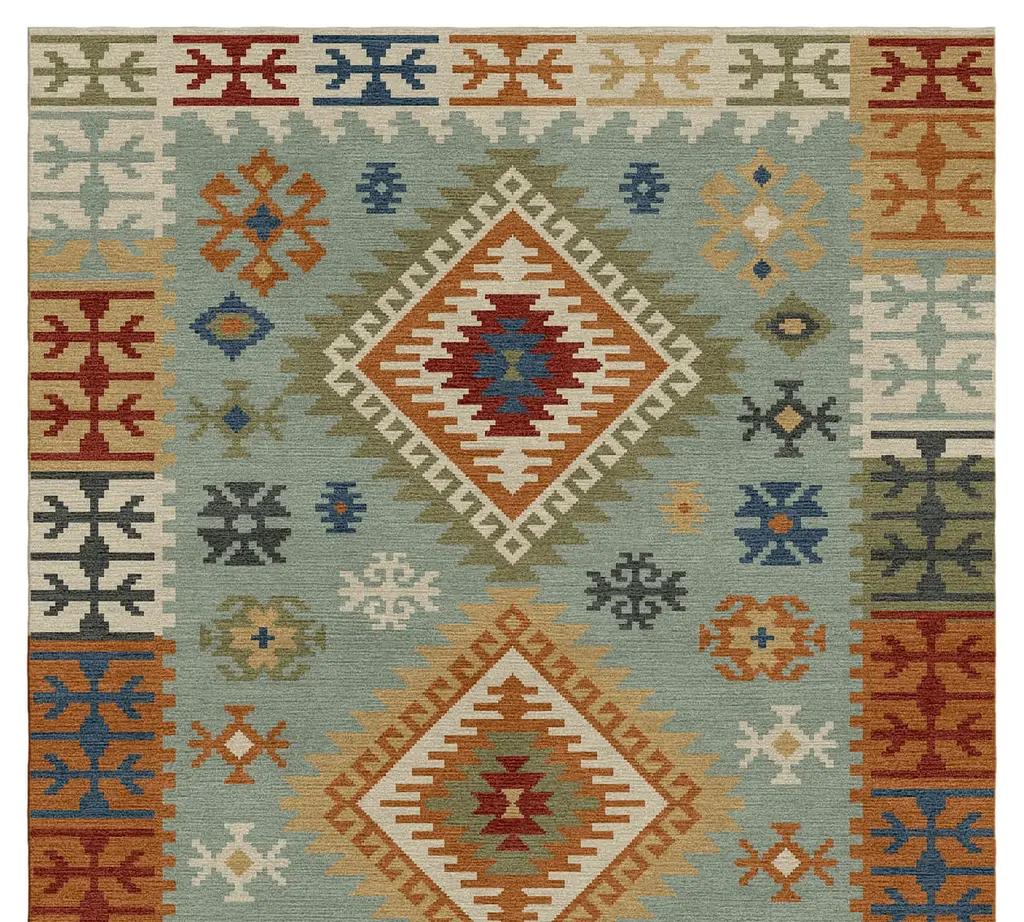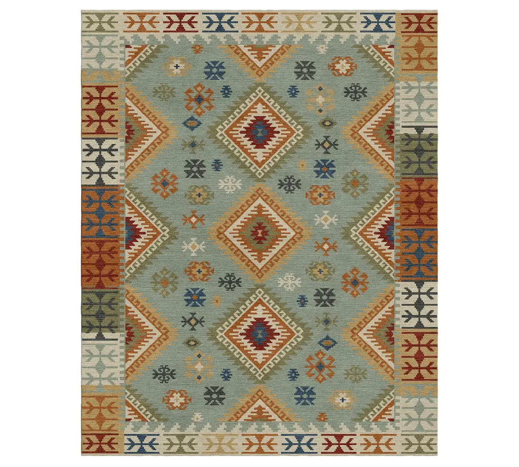 With its rich and vibrant colors, our Winslow Custom Kilim Rug enlivens the look of a room. Beautiful design details add to its stylish appeal.