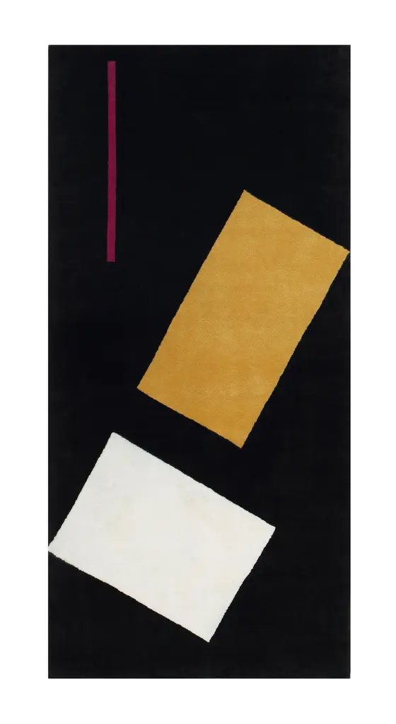 Eileen Gray created not only some of the most important furniture classics of the 20th century but also had her own studio where rugs were produced according to her designs. Some of her most beautiful patterns are now again available as re-editions: masterpieces of abstract textile art of 100 % pure new wool, natural vegetable dye, handwoven and processed to the highest quality with a density of 80 knots per square inch. Bonaparte is named after Rue Bonaparte in Paris, where Eileen Gray lived for decades.Rug from 100% pure wool. colored with natural vegetable dyes. Hand knotted with 80 knots per square inch (12.5 cm²).Dimensions: W 100 cm, H 210 cm.