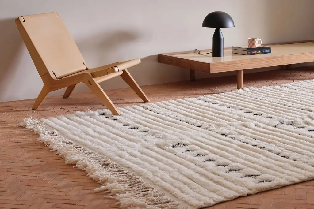 Our Moroccan pieces are each one-of-a-kind. Much of our collection was woven between 30 and 100 years ago, and curated by us. Other rugs in our collection are fresh off the loom and made with traditional techniques. Moroccan rugs don’t come with a key. As with any painting or poem, their motifs have many subjective interpretations. Originally made for personal use, these rugs took months to weave, documenting a shifting tide of events and emotions in the weaver’s life.