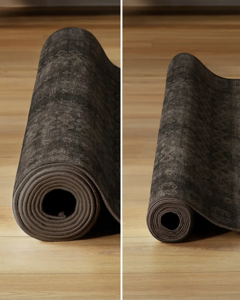 From our Founder���s home to yours. Inspired by European caf�� napkins, our Cyrus Black Rug imparts a distressed feel that unlocks world culture and artisanal craftsmanship. Its soft black, cool taupe, and burgundy palette grounds any space with vintage-style texture. The design expands out from the center in layered bands of ornate motifs, reminiscent of intricate tile work. Water-resistant, stain-resistant, and machine-washable. Rug colors may vary slightly according to your device and the lighting in your space.