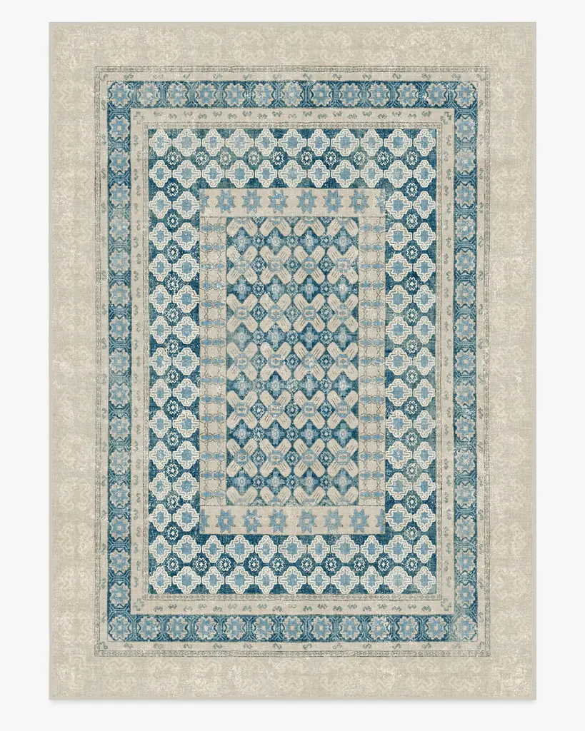 Inspired by European caf�� napkins, our Cyrus Neutral and Blue Rug imparts the distressed feel of artisanal craftsmanship. Its neutral background, coupled with blue linework, creates an inviting atmosphere in any room. Water-resistant, stain-resistant, and machine-washable. Rug colors may vary slightly according to your device and the lighting in your space.