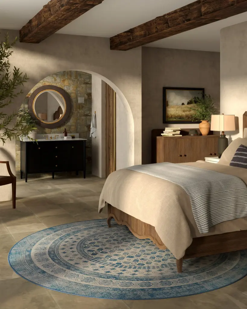 Inspired by European caf�� napkins, our Cyrus Ocean and Ivory Rug imparts the distressed feel of artisanal craftsmanship. Its ocean blue background, coupled with ivory motifs, creates a sophisticated aesthetic in any room. Water-resistant, stain-resistant, and machine-washable. Rug colors may vary slightly according to your device and the lighting in your space.