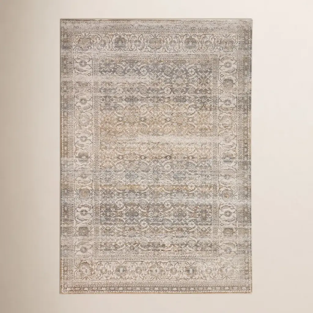 From our Founder���s home to yours. Inspired by European caf�� napkins, our Cyrus Rose Gold Rug imparts a distressed feel that unlocks world culture and artisanal craftsmanship. Its neutral beige background, tinted with a hint of pink, gives off a luxurious rose gold feel. The design is complemented by a slightly lighter rose gold, creating a subtle yet shiny halo outline on some of the motifs, and adding depth within the composition. The final touch is a deep, rich brown, reminiscent of intricate tile work. Water-resistant, stain-resistant, and machine-washable. Rug colors may vary slightly according to your device and the lighting in your space.