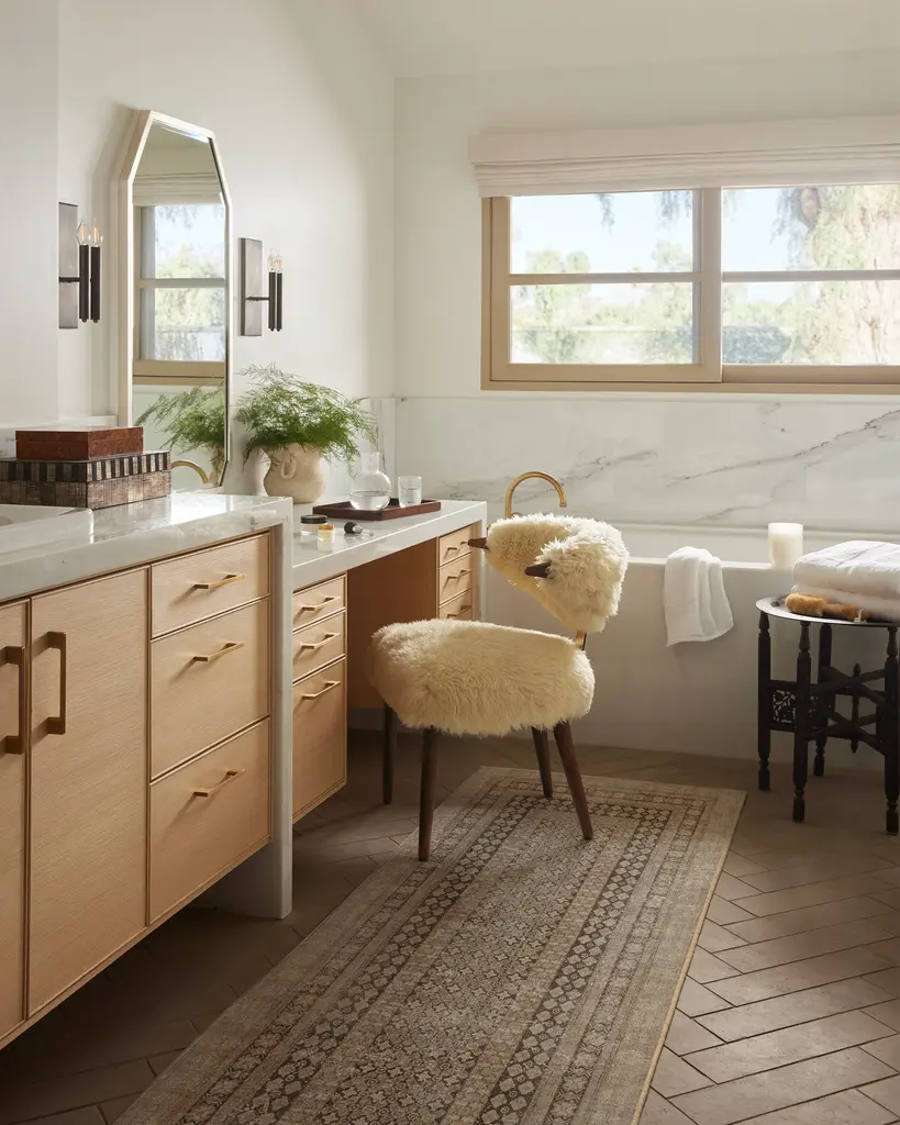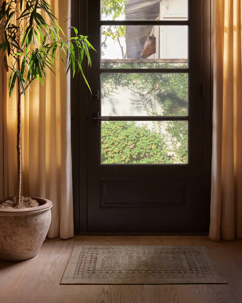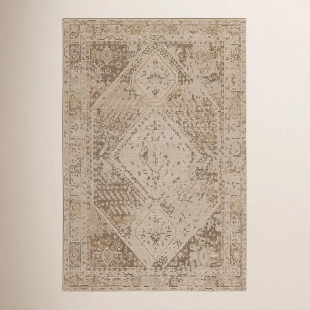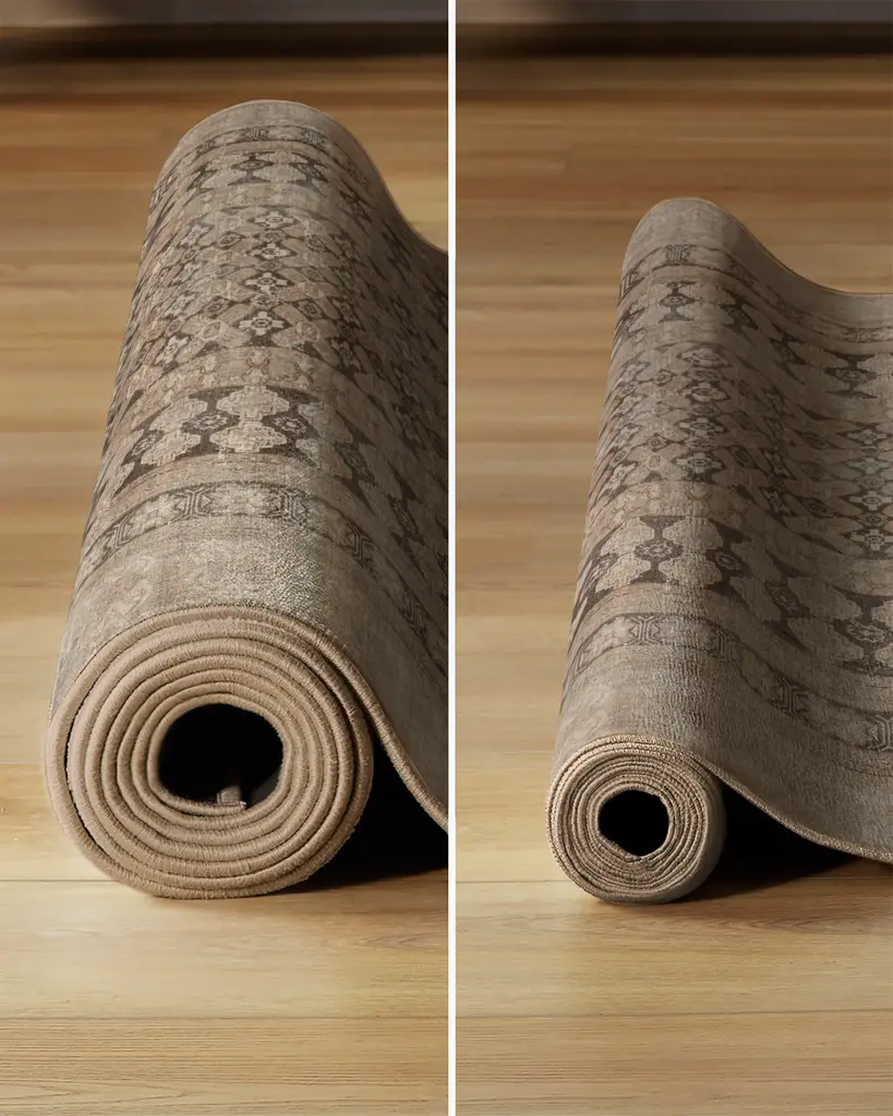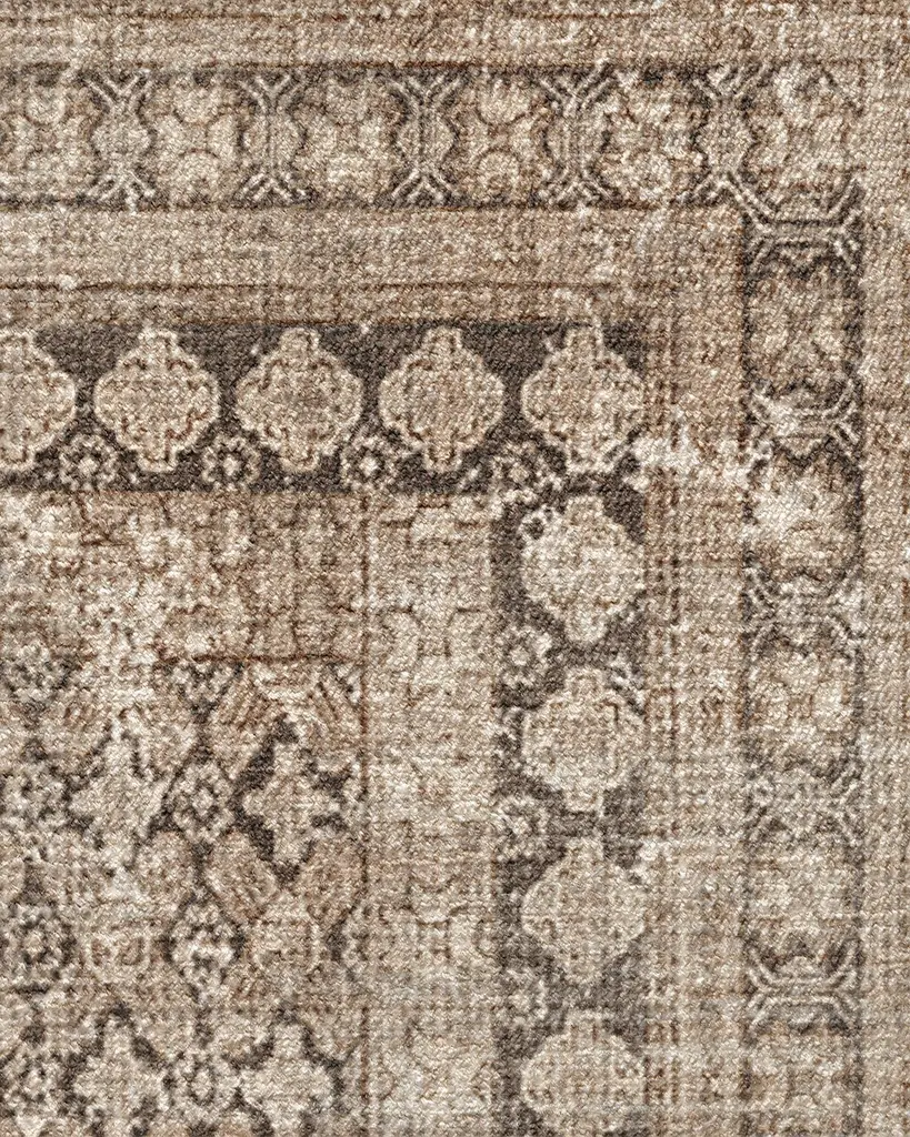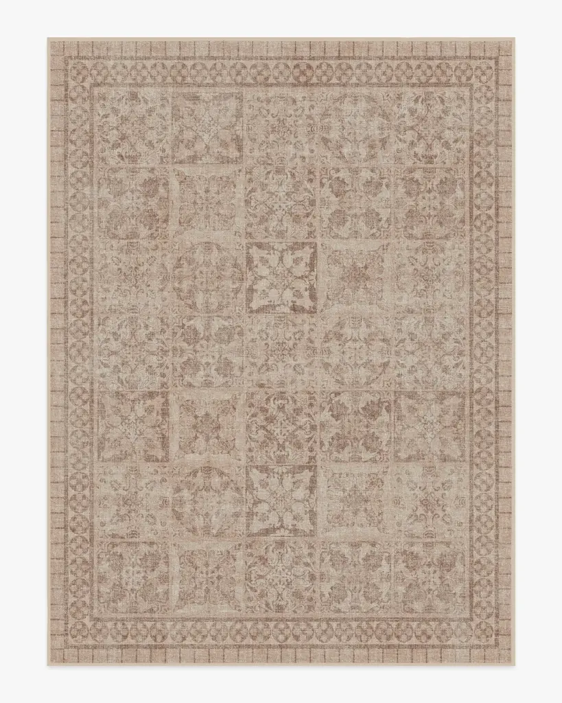From our Founder���s home to yours. Inspired by European caf�� napkins, our Cyrus Rose Gold Rug imparts a distressed feel that unlocks world culture and artisanal craftsmanship. Its neutral beige background, tinted with a hint of pink, gives off a luxurious rose gold feel. The design is complemented by a slightly lighter rose gold, creating a subtle yet shiny halo outline on some of the motifs, and adding depth within the composition. The final touch is a deep, rich brown, reminiscent of intricate tile work. Water-resistant, stain-resistant, and machine-washable. Rug colors may vary slightly according to your device and the lighting in your space.