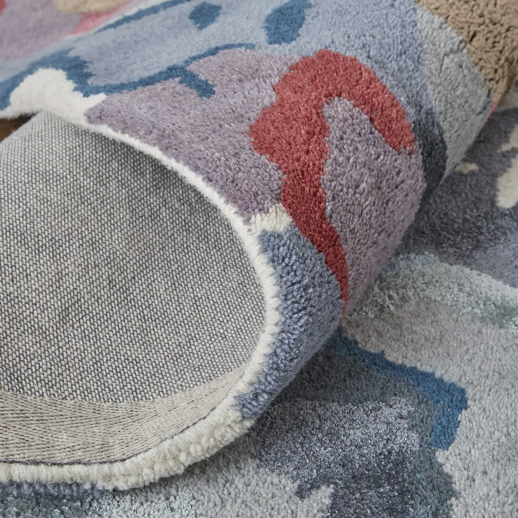 Collection: Dafney Colors: Blue, Gray, Pink Construction: Hand Tufted Material: Face: Viscose, Wool / Warp: Cotton Pile: Medium Pile Pile Height: 0.62" Styles: Transitional,Casual Backing: Cotton Made In: India Thickness: 0.62" Price Range: $$$$$ (Premium)