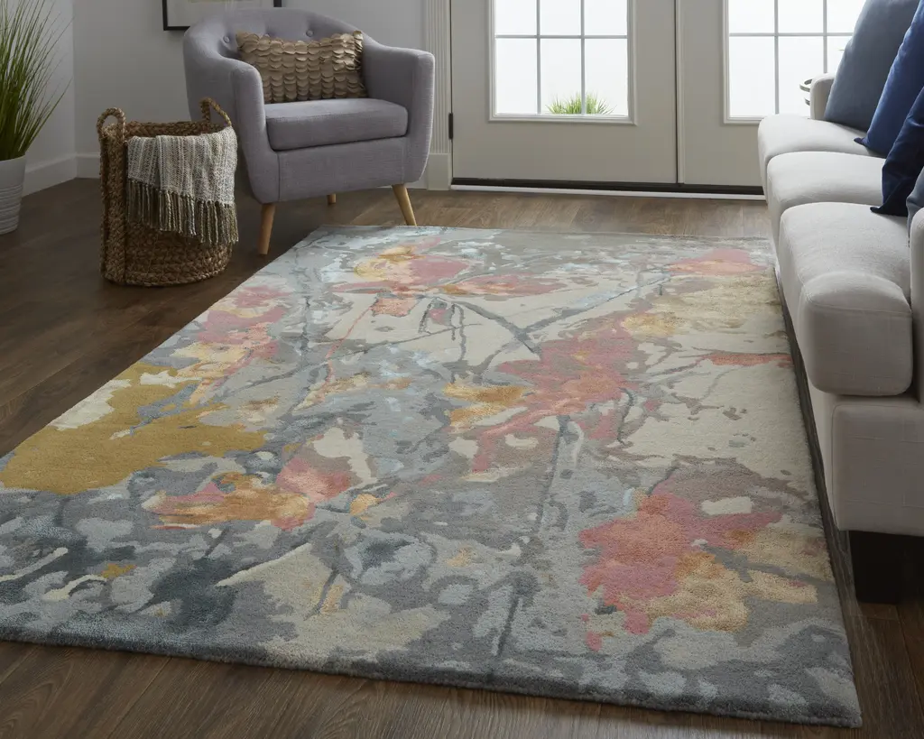 Collection: Dafney Colors: Blue, Pink, Gray Construction: Hand Tufted Material: Face: Viscose, Wool / Warp: Cotton Pile: Medium Pile Pile Height: 0.62" Styles: Transitional,Casual Backing: Cotton Made In: India Thickness: 0.62" Price Range: $$$$$ (Premium)