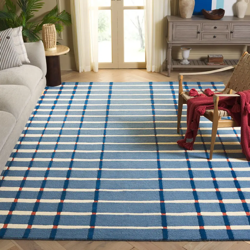 Introducing the exquisite 4'x 6' Small Rectangle Area Rug. Boasting a beautiful blend of blue and ivory, this elegant rug adds an elegant and soothing charm to any room. Exquisitely crafted in India using a hand-tufted technique, this rug features an ideal height of 1/2", making it plush and comfortable underfoot. With a durable composition of 80% premium wool and 20% organic cotton, this rug guarantees longevity and easy maintenance. The timeless and modern design perfectly suits any interior aesthetic, lending a tasteful touch to your space. Let your floors do the talking with this stunning piece that is as captivating as it is luxurious. Upgrade your room d?cor with this versatile piece of art!