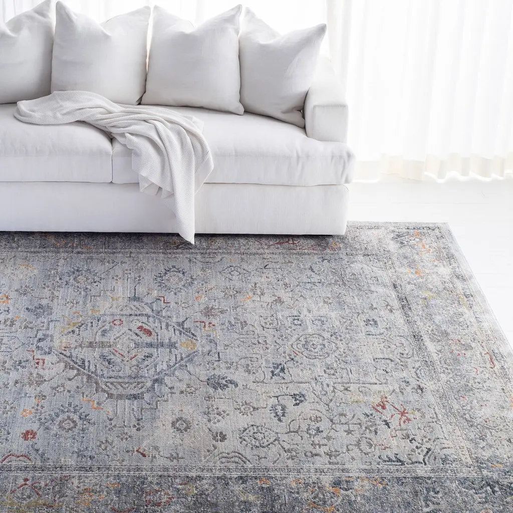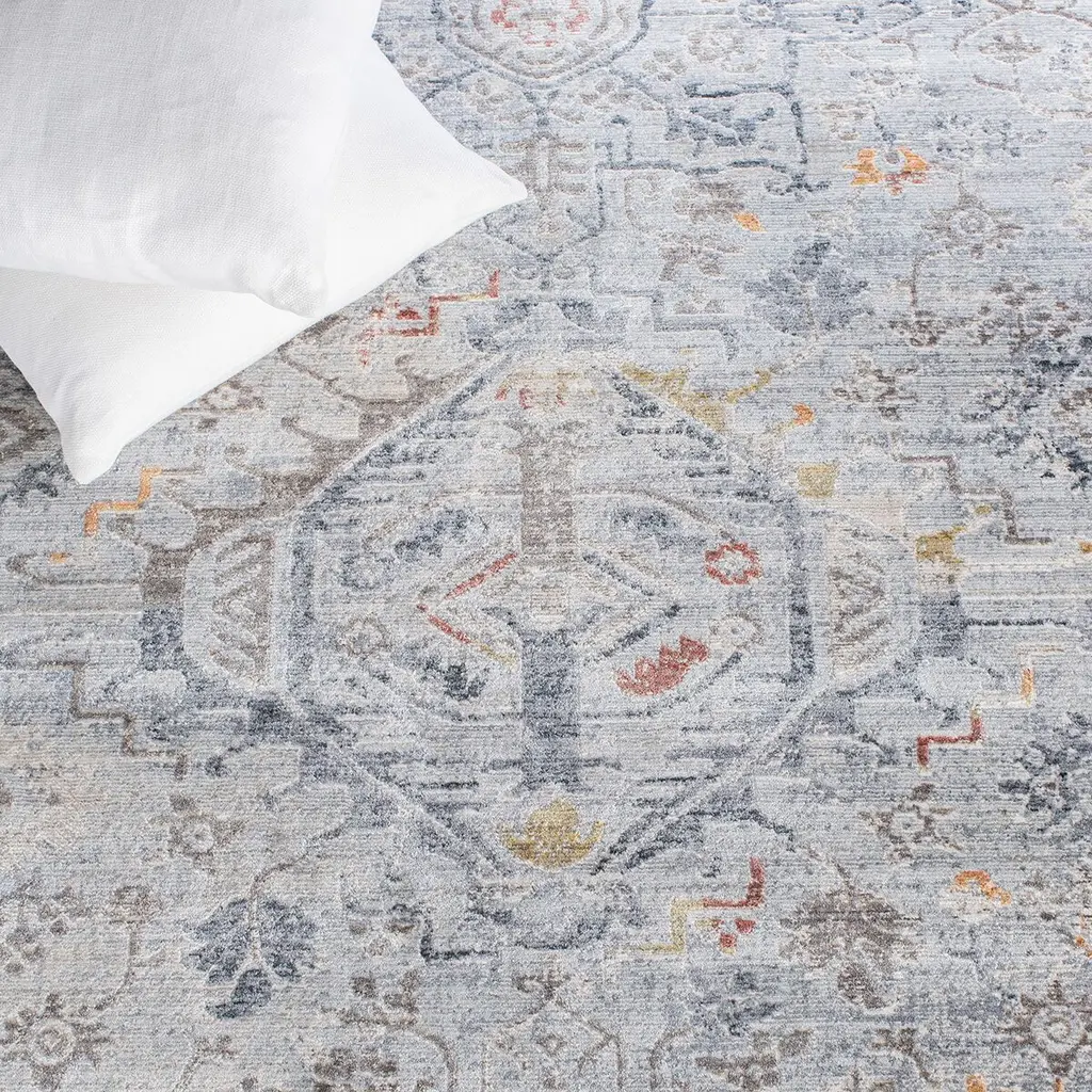 Introduce an element of timeless elegance to your home with our exquisite large rectangle area rug, perfectly sized at 9' x 12' for substantial coverage in your living space. Crafted in Turkey, renowned for its heritage in rug making, this piece embodies both the durability and intricate design characteristic of traditional styling. The light grey and navy color palette is versatile yet striking, ensuring this rug not only anchors your room but also enhances its decor with a classic charm. The gentle hues are brought to life with pops of warm colors throughout the carefully detailed pattern, boasting floral and geometric motifs that hark back to the ancient designs of historic weaves. This luxurious rug is power-loomed with a blend of polyester and polypropylene, creating a soft, inviting texture that is also sturdy for high-traffic areas. Standing at a comfortable height of 1/4 inches, it provides a subtle plushness underfoot. Moreover, we're proud to affirm that our rug is OEKO-TEX certified, guaranteeing it's crafted without harmful substances, making it a safe choice for your family and pets. Delight in the harmonious blend of old-world appeal and modern technology with this power-loomed treasure?a statement piece that's as enduring in style as it is in construction.