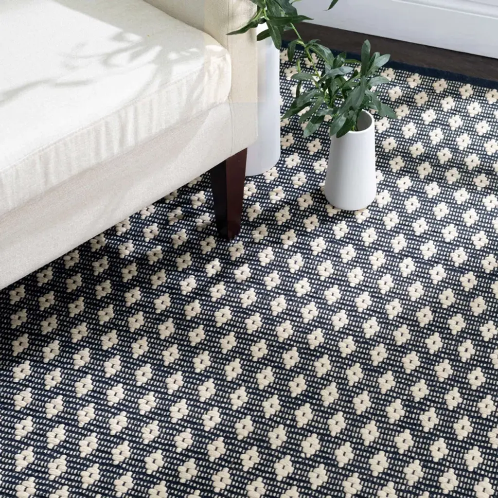 Dainty Diamond Navy/ivory Handwoven Cotton Rug