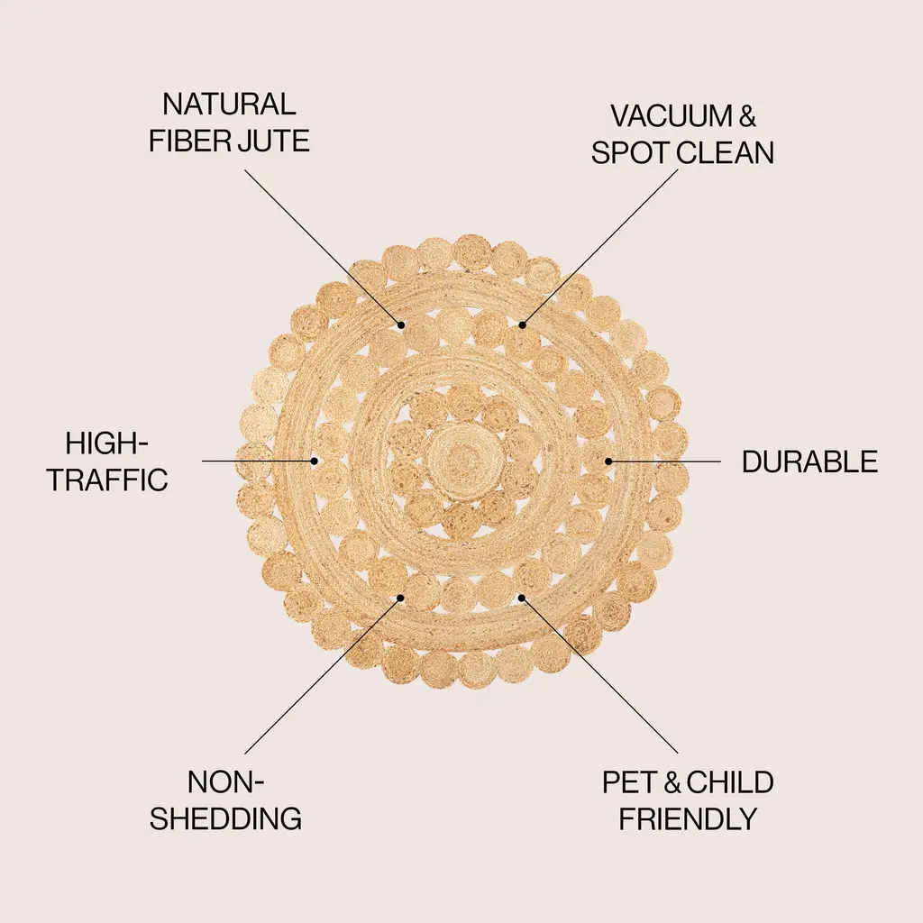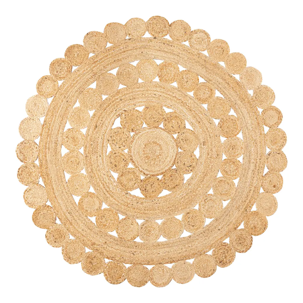 Our flat-weave jute medallion rugs bring a modern hippie vibe to the living room, bedroom, or home office. Versatile, easy-care natural fibers are the perfect neutral flooring for your minimalist coastal cottage or colorful Boho home. Handmade by skilled artisans, this rug's concentric circles add a stylish geometric touch.