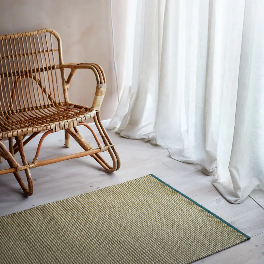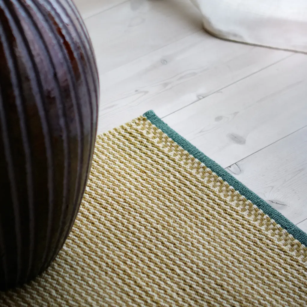 The Daisy Rug by Fabula Living, designed by Lisbet Friis, brings bold yet sophisticated colors to your home. Hand-woven from high-quality New Zealand wool, this rug showcases Friis’s signature style, balancing classic stripes with fresh, modern appeal. With a rich palette that includes warm black, burnt sienna, and hay green, the Daisy Rug adds depth and refinement to any space. The playful chequered edge detail completes the look, making it a standout piece that blends tradition with a contemporary twist.