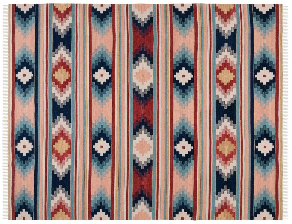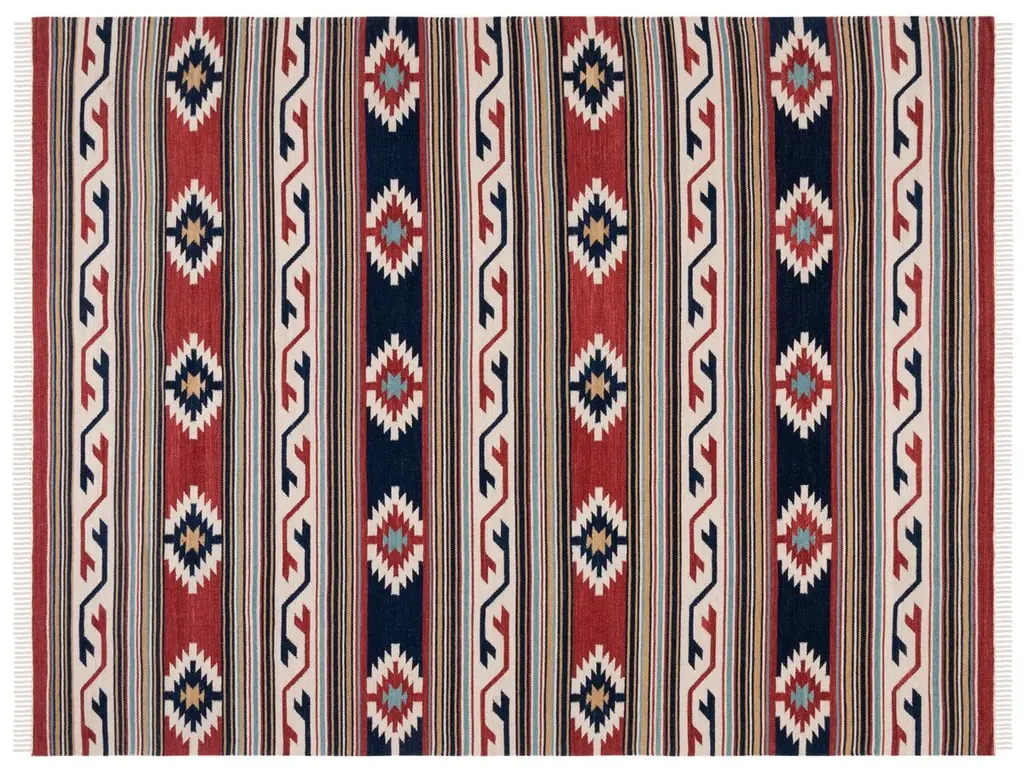 Indulge in the rich color palette and timeless design of this exquisite 3' X 5' area rug, a perfect embodiment of Bohemian elegance blended with traditional craftsmanship. Intricately constructed using a Flat Weave technique that enhances its durability, this rug is made of an opulent blend of 80% Wool and 20% Cotton, promising both comfort and longevity. The low-profile height of 1/4" ensures that it is a versatile addition to any room, lying flat and stable under furniture and foot traffic. Made with care in India, this rug showcases an Ivory/Rust color scheme that brings warmth and character to your space. The design boasts a harmonious combination of geometric patterns, featuring bold central medallions flanked by tribal-inspired motifs in a linear arrangement. The deep rust tones are beautifully contrasted by ivory and accented with hints of black, teal, and other complementary hues, creating a visual feast that captivates and inspires. Ideal for those looking to inject a sense of worldly charm into their interiors, the small rectangular shape of this rug makes it a versatile choice for various settings, whether it's the living room, bedroom, or home office. It's not just a rug; it's a statement piece that will effortlessly elevate the aesthetic of your decor with its enchanting Bohemian style. Bring home this masterpiece today and experience the perfect fusion of artistry and quality, a treasure that will enrich your living space for years to come.