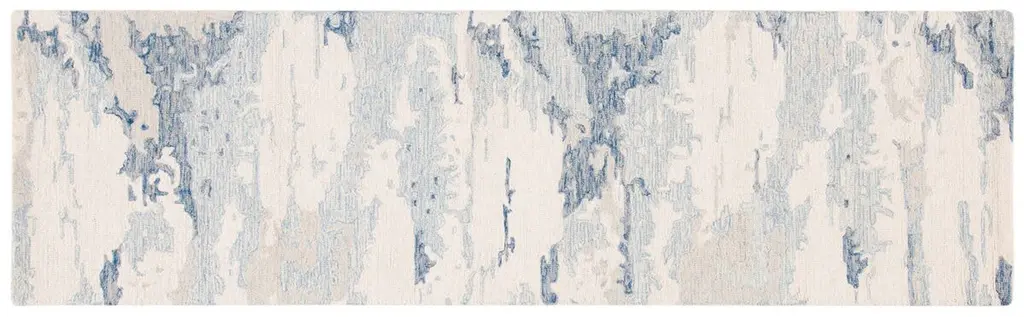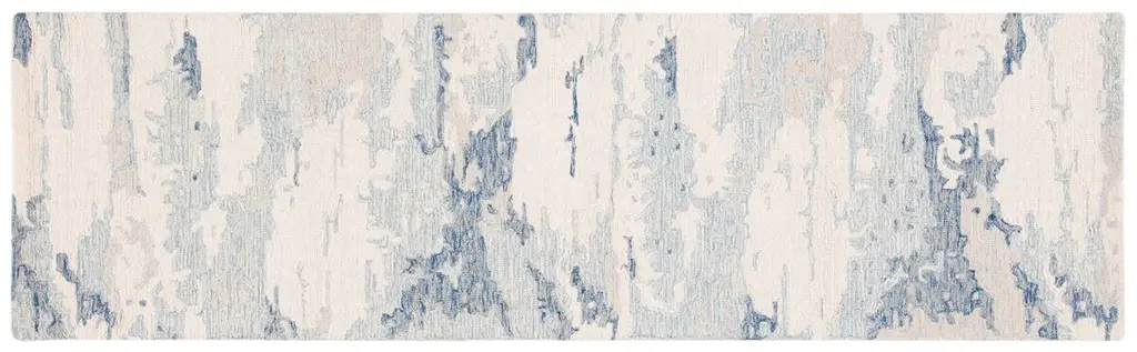 Transform your living space with our exquisite hand-tufted wool rug, boasting a 3' x 5' dimension. This small rectangle rug, eloquently crafted in India, features a plush 3/8" pile height that adds a layer of comfort to your flooring. The contemporary ivory and blue color palette breathes life into this piece, capturing an abstract and painterly design that effortlessly blends with modern aesthetics. While the rug is not machine washable and lacks slip resistance, its wool construction ensures durability and a soft underfoot experience. Elevate your home's decor with this work of art that merges traditional handcrafted quality with a modern flair.