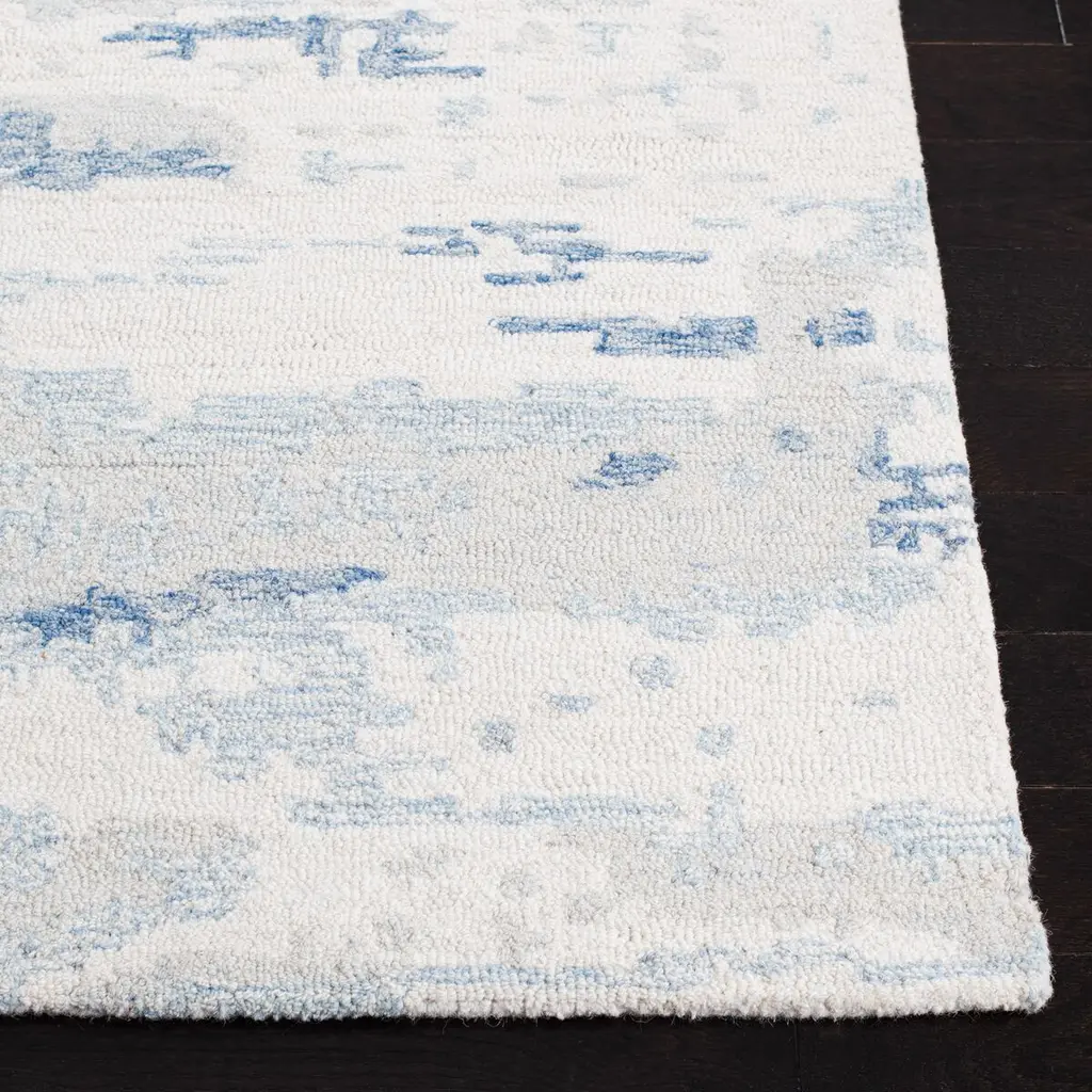 Transform your living space with our exquisite hand-tufted wool rug, boasting a 3' x 5' dimension. This small rectangle rug, eloquently crafted in India, features a plush 3/8" pile height that adds a layer of comfort to your flooring. The contemporary ivory and blue color palette breathes life into this piece, capturing an abstract and painterly design that effortlessly blends with modern aesthetics. While the rug is not machine washable and lacks slip resistance, its wool construction ensures durability and a soft underfoot experience. Elevate your home's decor with this work of art that merges traditional handcrafted quality with a modern flair.