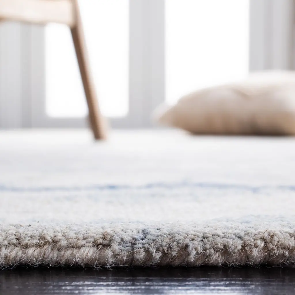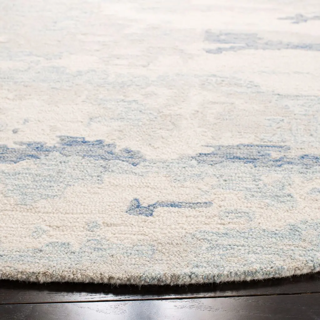 Transform your living space with our exquisite hand-tufted wool rug, boasting a 3' x 5' dimension. This small rectangle rug, eloquently crafted in India, features a plush 3/8" pile height that adds a layer of comfort to your flooring. The contemporary ivory and blue color palette breathes life into this piece, capturing an abstract and painterly design that effortlessly blends with modern aesthetics. While the rug is not machine washable and lacks slip resistance, its wool construction ensures durability and a soft underfoot experience. Elevate your home's decor with this work of art that merges traditional handcrafted quality with a modern flair.