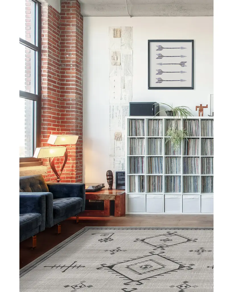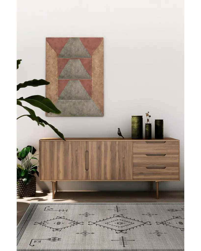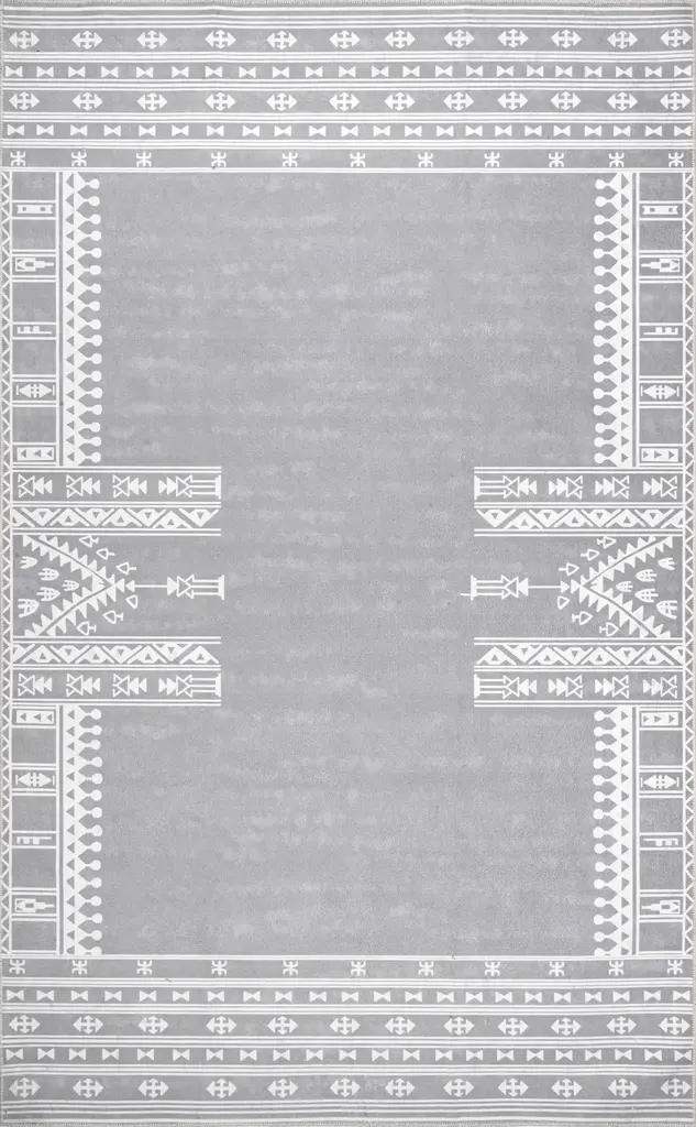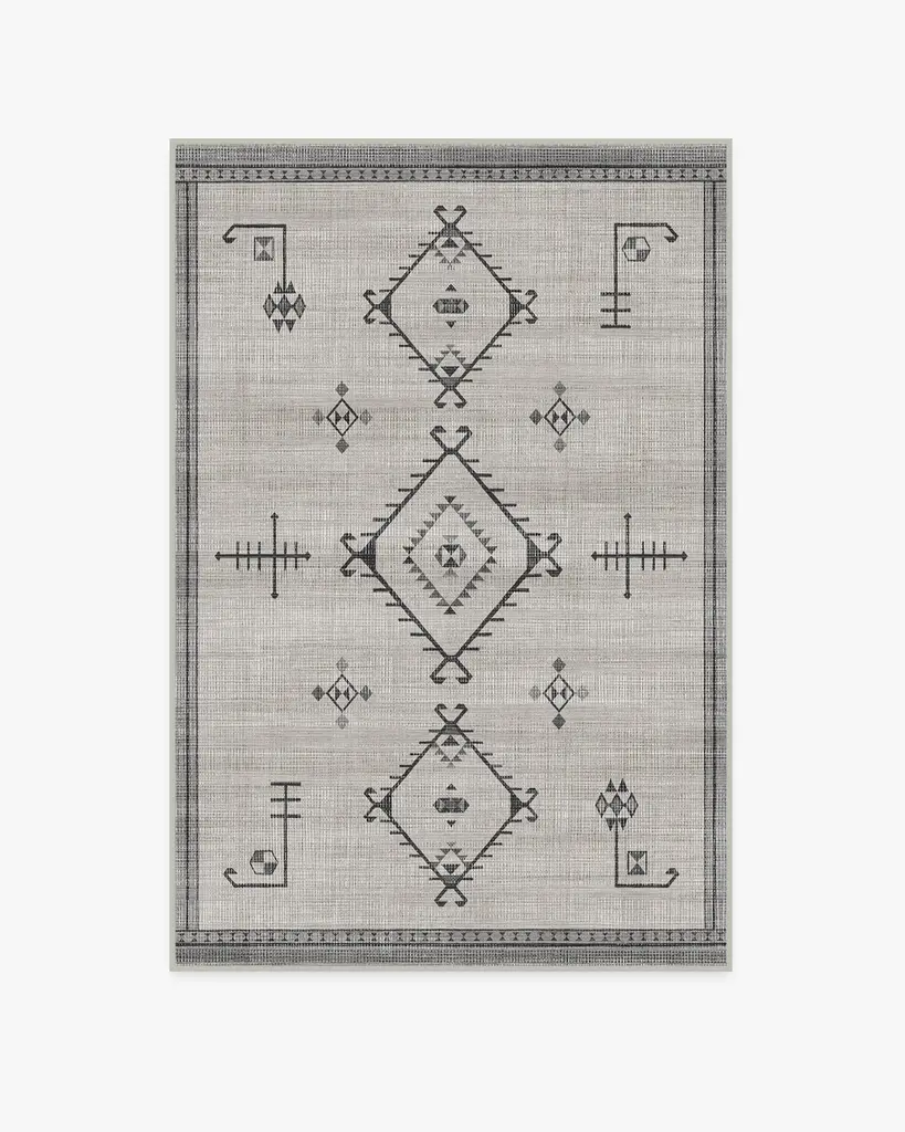 Named after the Arabic word for "a beautiful vision," our Damali Grey Overdye Rug is a sight to behold. This Gabbeh rug-inspired design features three oversized diamonds surrounded by simple linework on a large field of grey. With its minimalistic motif complemented by a subtle, textured background, this rug lends a modern chic vibe to any room.