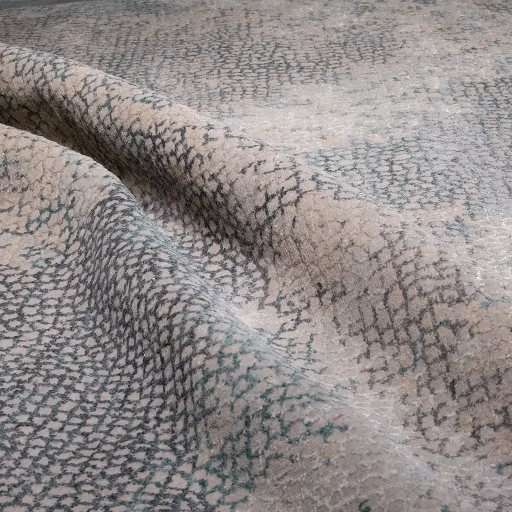 This superb artisan rug is hand-knotted on two layers using a Persian-knot technique, revealing a hyperrealistic motif inspired by reptile skin. Its mix of fine wool and cotton yarns is dyed following only artisan and natural methods. Please do not use a carpet sweeper or expose the rug to direct sunlight. Only use a medium-power vacuum cleaner. Tailor-made options are available.