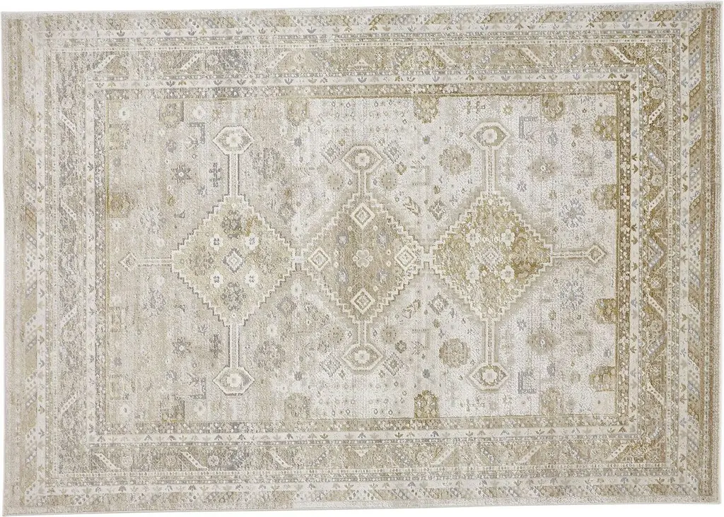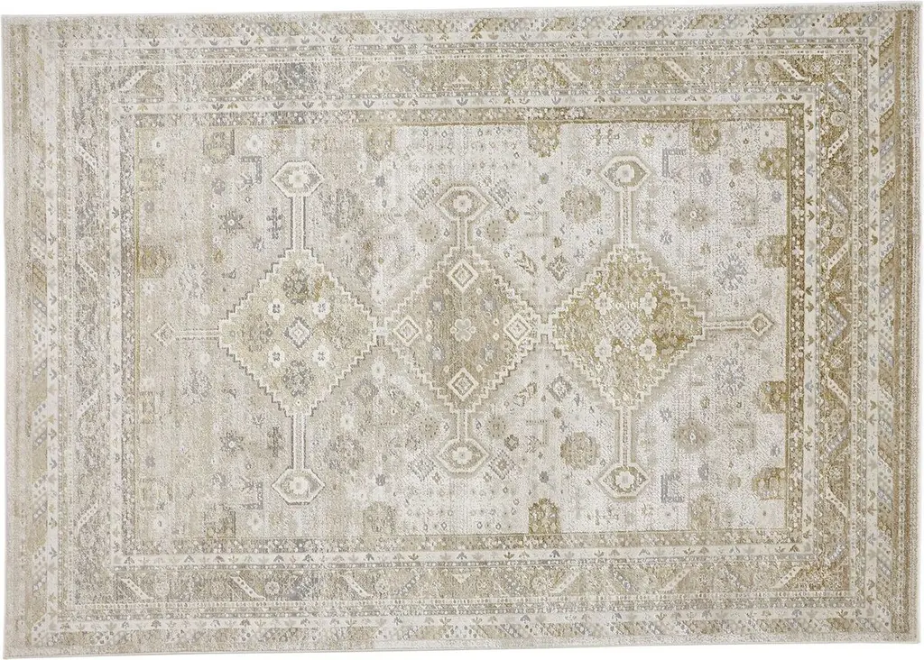 With its warm, neutral coloring and medallion design, this Turkish-inspired floor rug can bring a seasoned feel to any home design. The hand-knotted wool construction offers softness and durability in a medium pile floor rug perfect for anchoring a dining room, bedroom, or formal lounge.