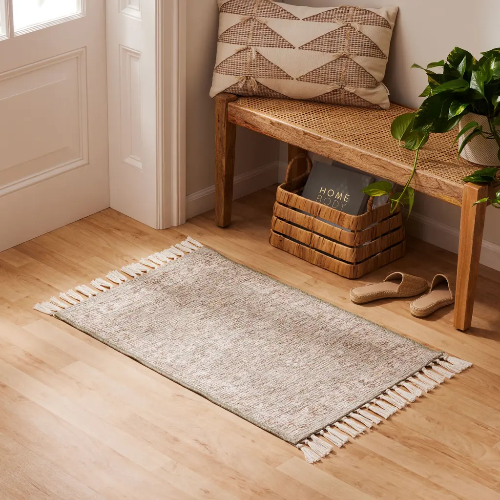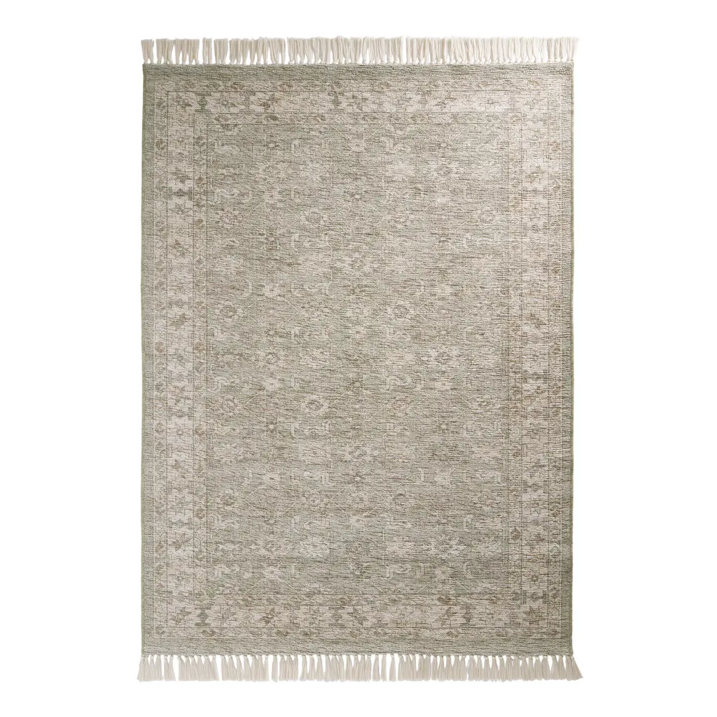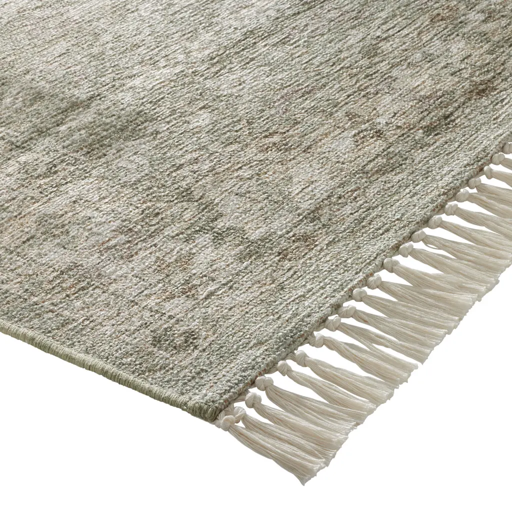 Featuring a machine-washable weave with an upscale texture, our Dani rug accents high-traffic spaces with antique floral motifs in sage green and beige. Soft, durable and family friendly, this washable area rug is strengthened by a backing, finished with ivory tassels and certified free of harmful chemicals. Dani's serene color palette and sumptuous hand feel are presented in a selection of easy-care sizes to refresh busy indoor living areas.
