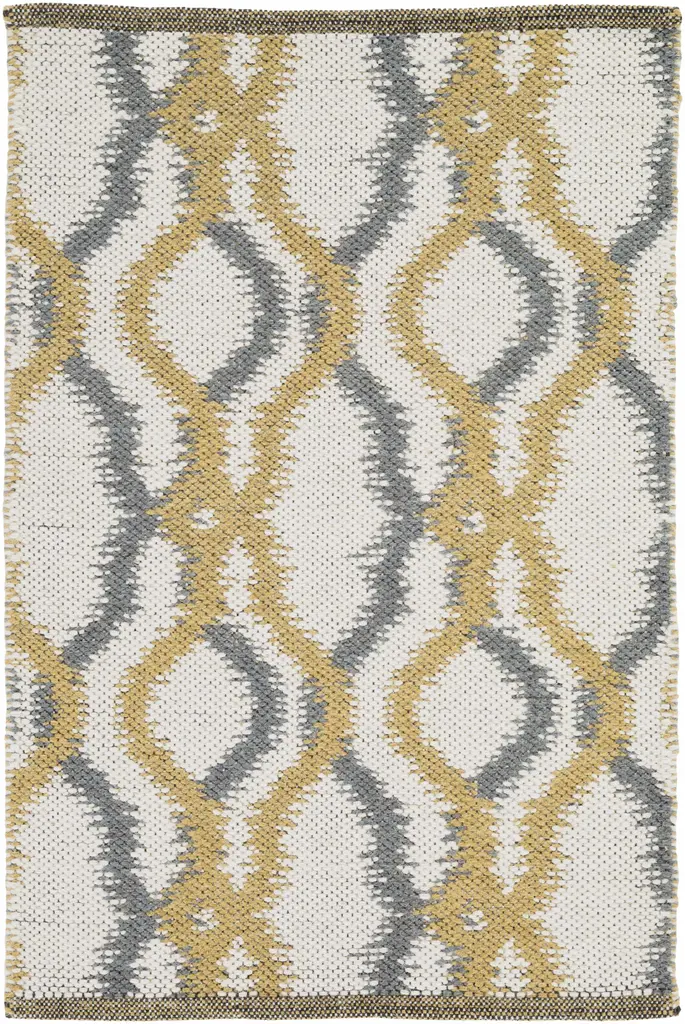 Collection: Danvers Colors: Charcoal, Ivory, Mustard Construction: Hand Woven Material: 100% Wool Pile: No Pile Styles: Contemporary Made In: India Thickness: 0.31" Price Range: $$$$$ (Most Affordable)