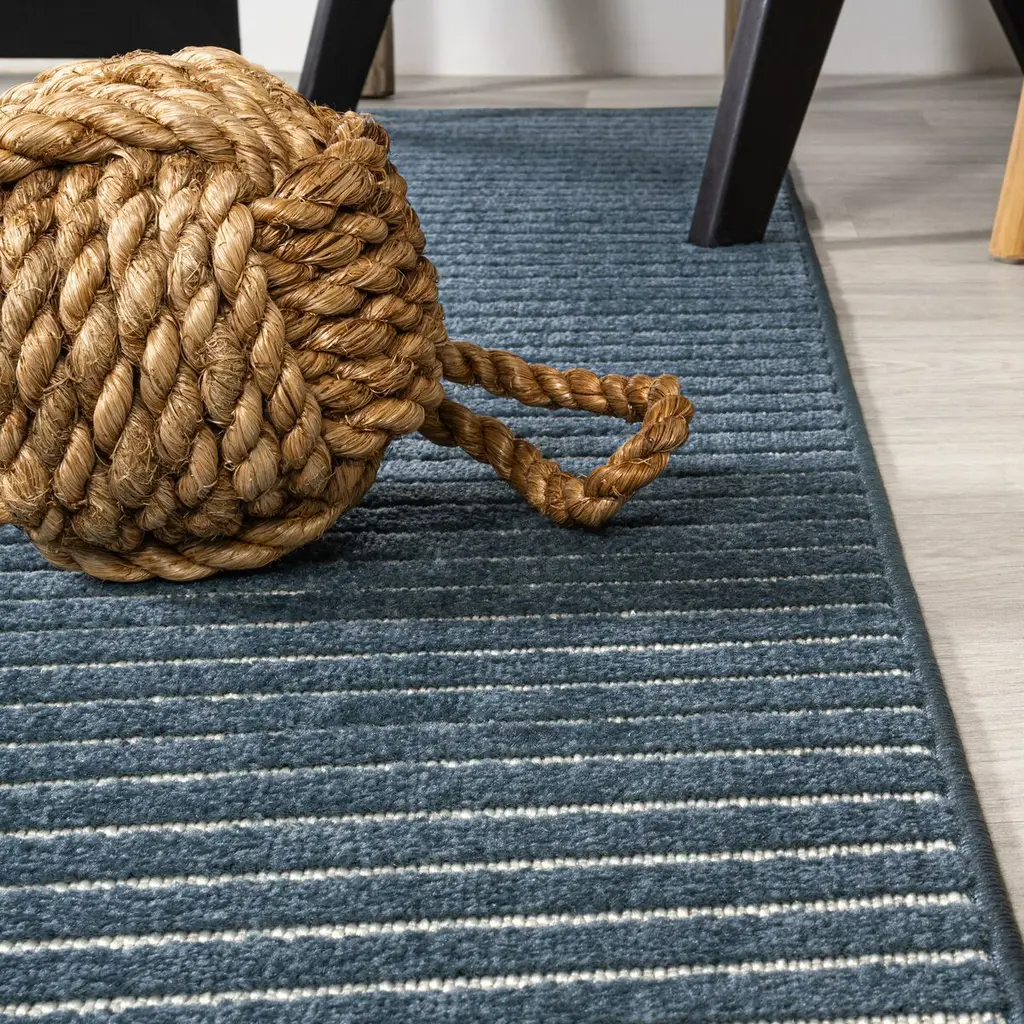 This minimalist striped rug also requires minimal care. It's made from fade-resistant, nonshedding, and easy-to-clean polypropylene, and it's durable enough for use outdoors as well as inside. A rug pad is recommended to help prevent slipping.