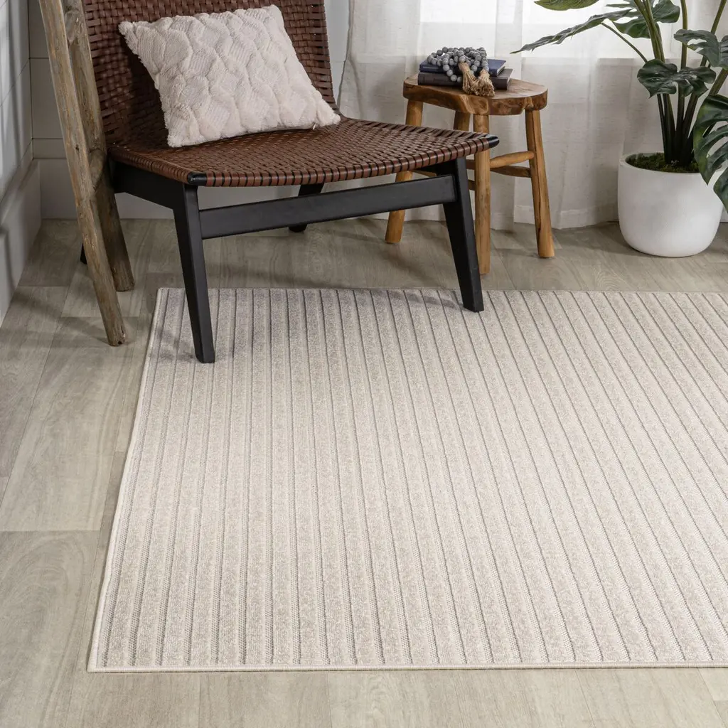 This minimalist striped rug also requires minimal care. It's made from fade-resistant, nonshedding, and easy-to-clean polypropylene, and it's durable enough for use outdoors as well as inside. A rug pad is recommended to help prevent slipping.