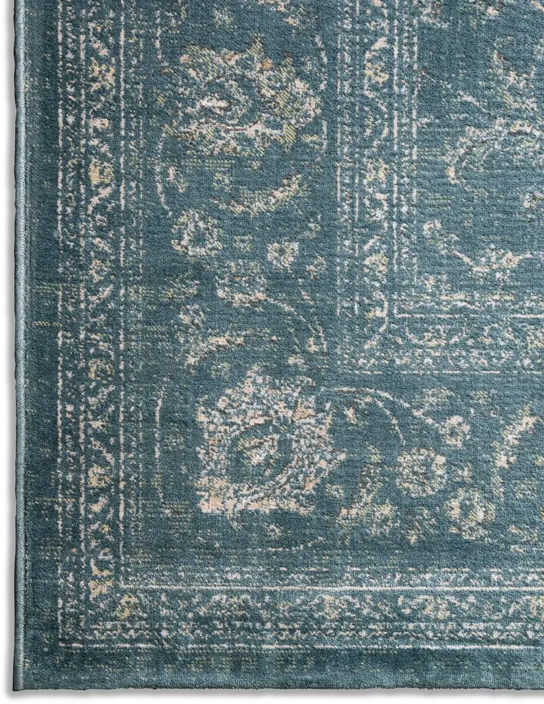Loomed of soft, silky viscose, this rug makes a luxurious addition to any space with its modern interpretation of a traditional design in oceanic hues. We recommend a rug pad to extend the life of your rug and keep it securely in place.