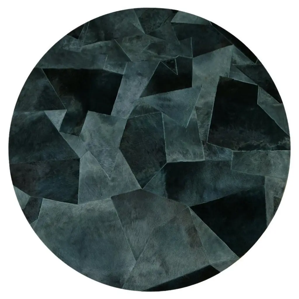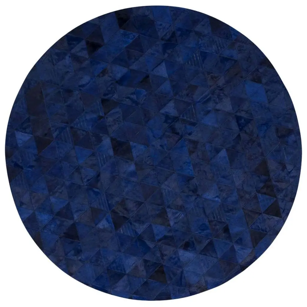 Dark Blue Round Customizable Trilogia Cowhide Rug Large