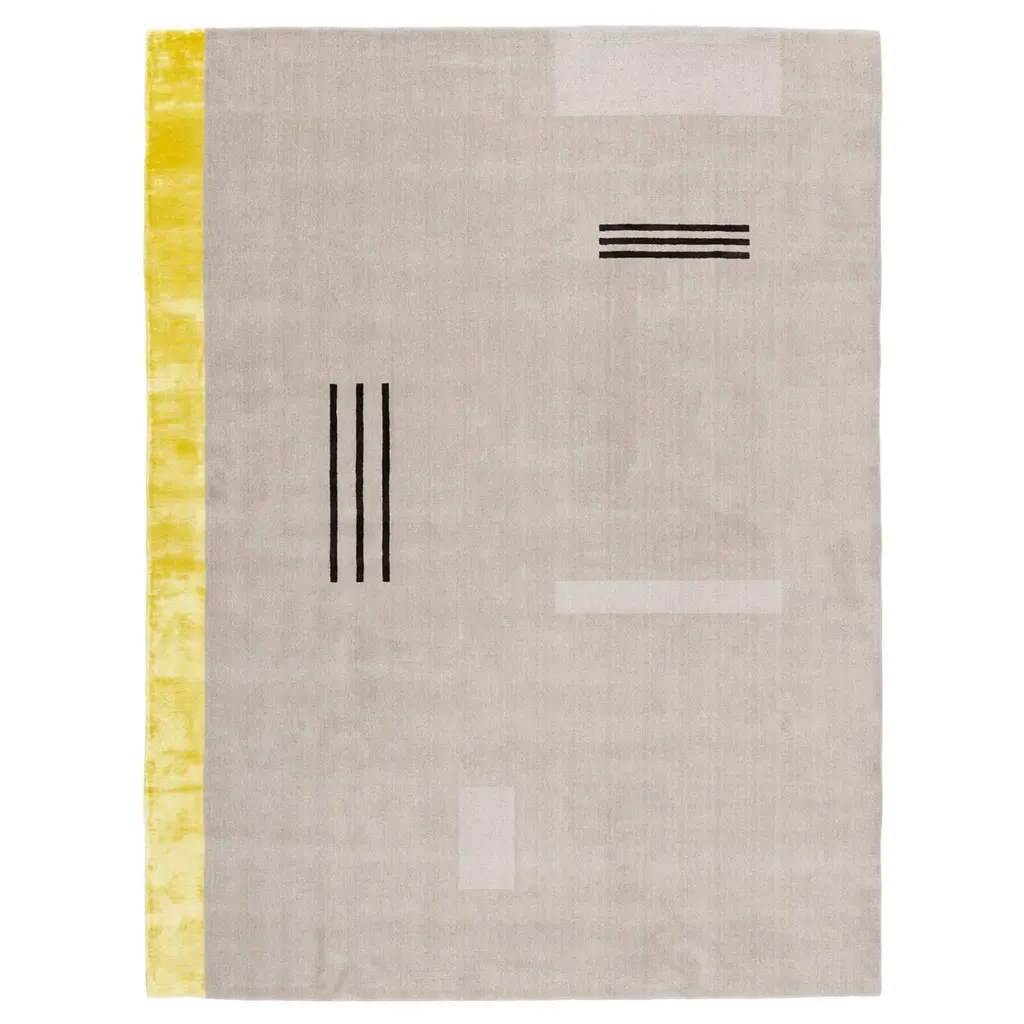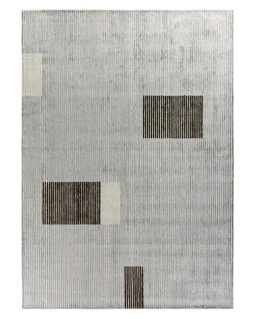 Dark Gray L2 Lines 300 Rectangular Rug In Hand-Loomed Viscose By Mohebban