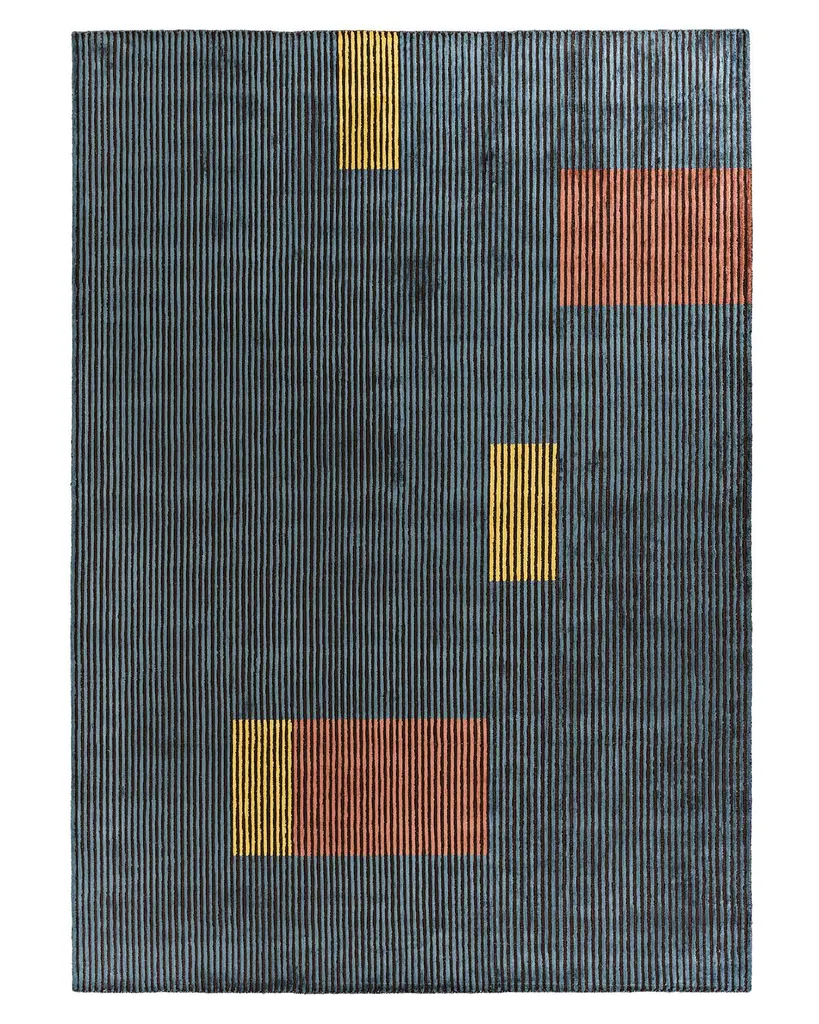 Dark Gray L2 Lines 400 Rectangular Rug in Hand-Loomed Viscose by MohebbanDimensions: W 400 x L 300 cmMaterials: ViscoseA succession of hand-carved, vertical lines in relief is interrupted by rectangles of different colors, which, like tiles, embellish the rigor of the basic design. Thanks to the particular reference of colors found in the collection, the Lines rugs also lend themselves to being combined with each other, creating a unique rug. These rugs are produced in India using the hand-loom technique with the use of viscose, which makes them soft and pleasant to the touch. All the rugs in the collection are available in different sizes and colors, customizable according to your needs.The carpet is not a simple furnishing accessory: it is a culture that has been handed down for generations, with wise gestures and refined techniques. With its shape it defines a physical but also spiritual space, and through the knots it tells an ancient and contemporary story, contributing to enriching the private universe of its owner with beauty and uniqueness. A responsibility not to be underestimated, of which the Mohebban family is fully aware. Since the early 1970s, Mohebban has been producing carpets of the highest quality, without forgetting these values and the profound meaning of a thousand-year-old art. From Iran, the family's place of origin, to Milan, the company's headquarters for more than half a century, passing through Turkey, India and Pakistan where production takes place today: for three generations an international vision, in which tradition, attention to detail, ancient gestures find their place, always accompanied by a contemporary look, attentive to design and the challenges of a dynamic and constantly evolving present.