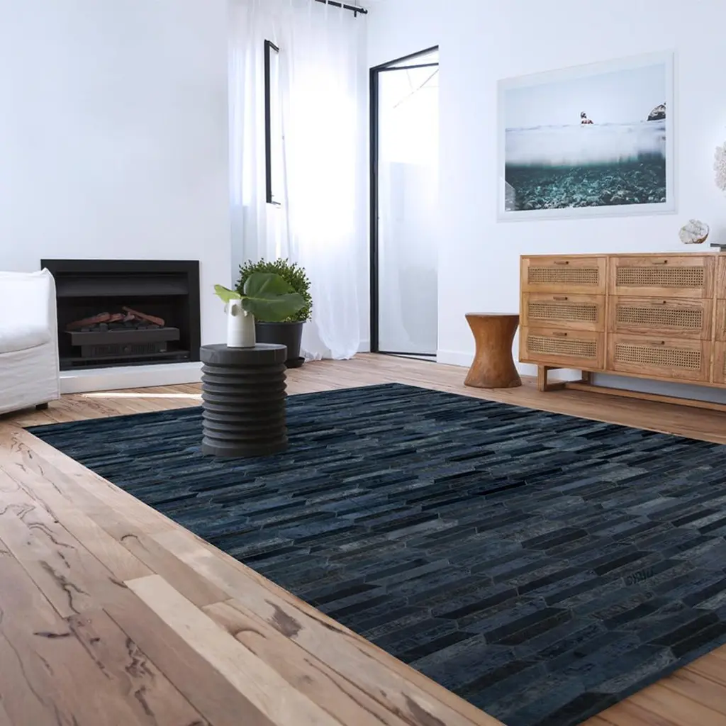 Our stunning new Olio rug is an exciting new development from Art Hide that skillfully blends a mix of grey, light caramel and taupe premium hide with lush grey and beige high-quality viscose.This beautiful, polished combination showcases and highlights the hide while maintaining a great price point.Rugs pads are recommended for the Olio. Small measures 2 x 1.6m (6’7” x 5’3”). Large measures 2 x 3M (6’7” x 9’8”).The rugs are pieced together using commercial grade nylon thread. It has a ribbon edge finish.This item can easily be customized to any color size or shape upon request. Art Hide rugs are usually made to order. Please allow 4-5 weeks for delivery.