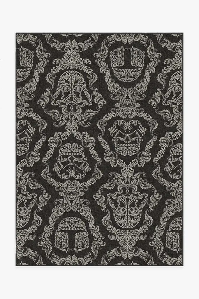 Feel the power of the dark side with our Dark Side Damask Charcoal Rug. Elegantly dark and mysterious, this rug features iconic silhouettes of the series' most famed villains - Darth Vader, Boba Fett and Stormtroopers - beautifully weaved within an intricate floral damask pattern. A classic tale with a classic pattern, this black and white rug will charm even non-Star Wars fans!