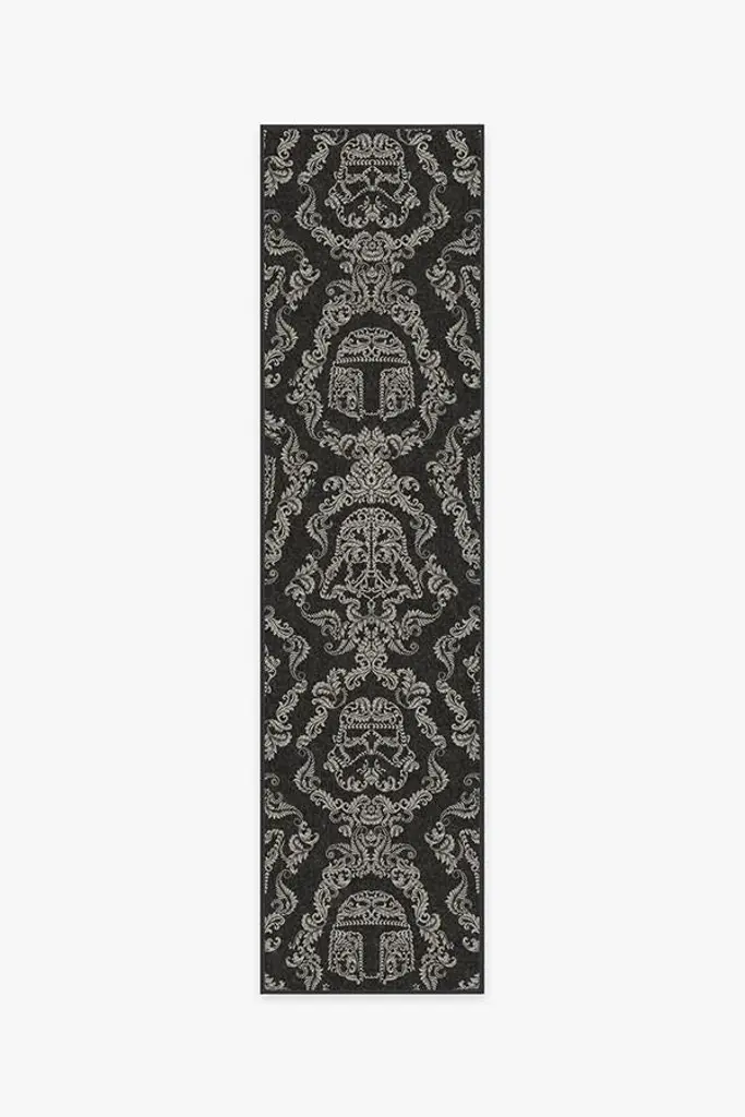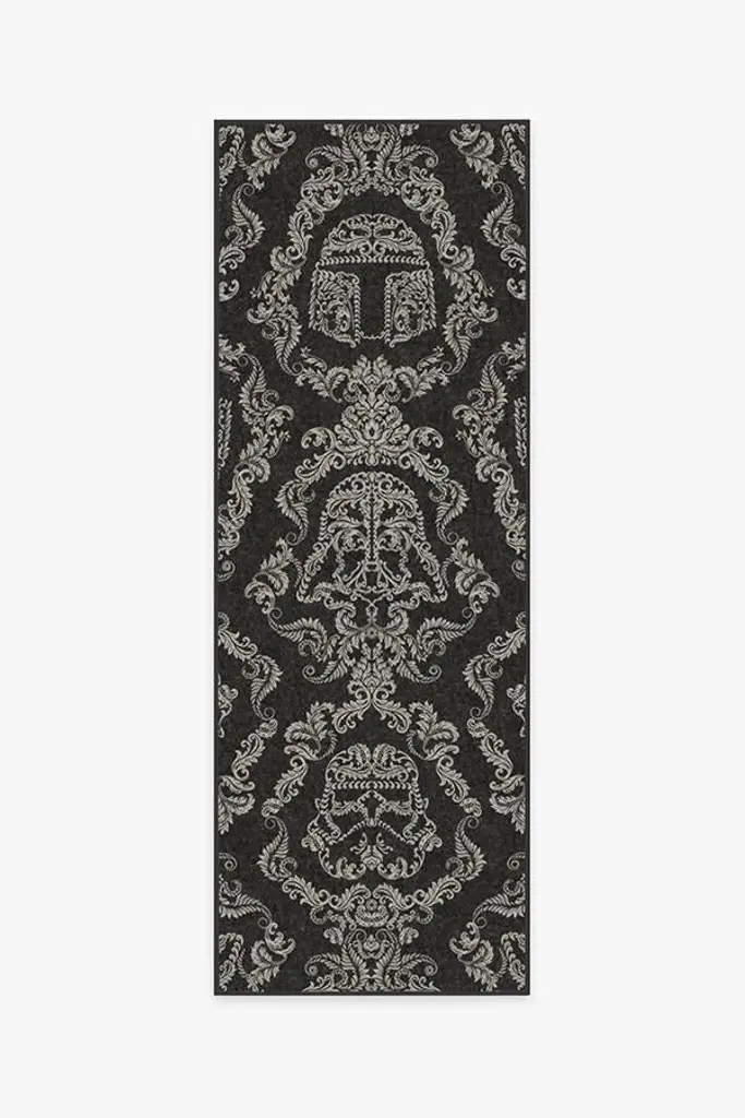Feel the power of the dark side with our Dark Side Damask Charcoal Rug. Elegantly dark and mysterious, this rug features iconic silhouettes of the series' most famed villains - Darth Vader, Boba Fett and Stormtroopers - beautifully weaved within an intricate floral damask pattern. A classic tale with a classic pattern, this black and white rug will charm even non-Star Wars fans!