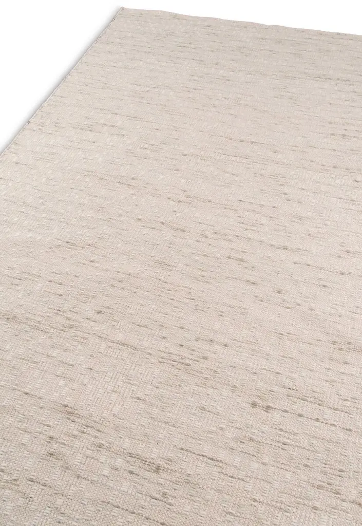 At home in nearly any decor, this rug is handwoven of wool with textured, abstract flecks on a neutral, striated ground. We recommend a rug pad to extend the life of your rug and keep it securely in place.