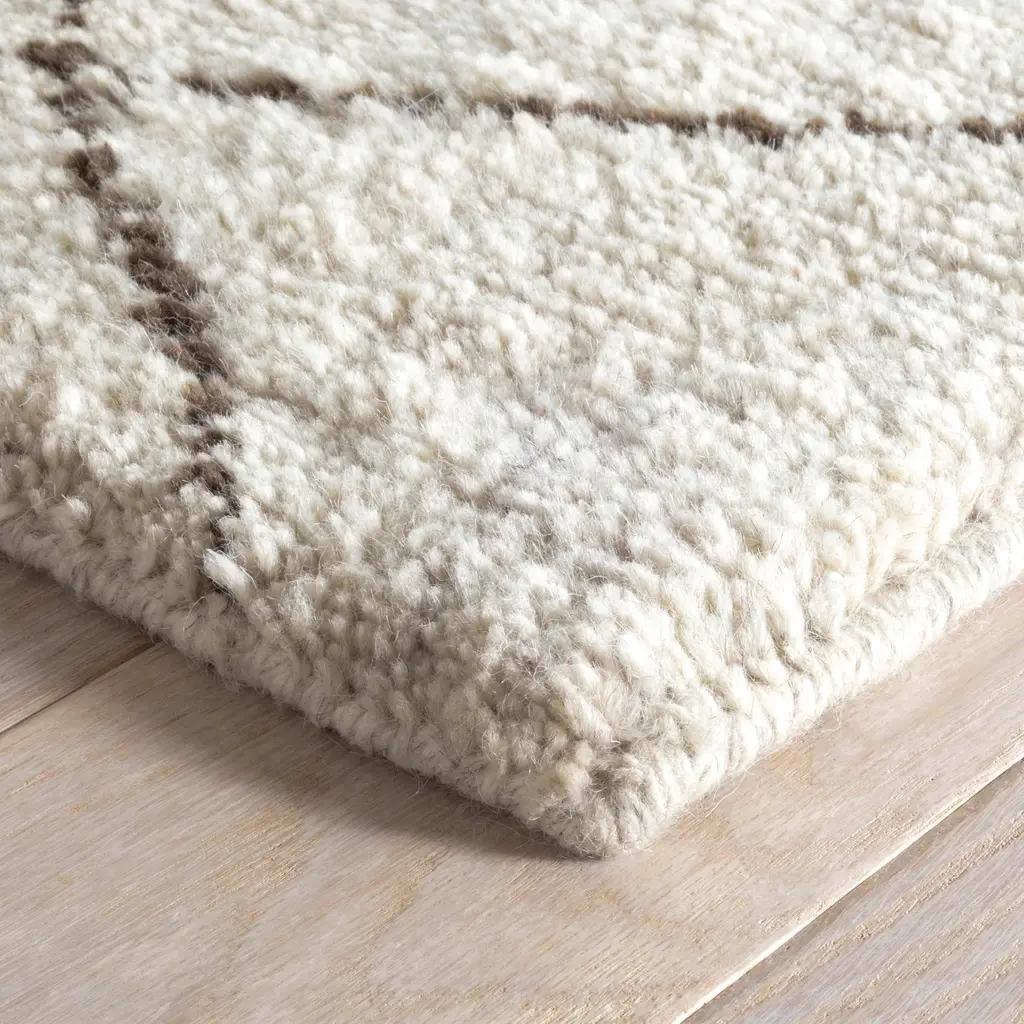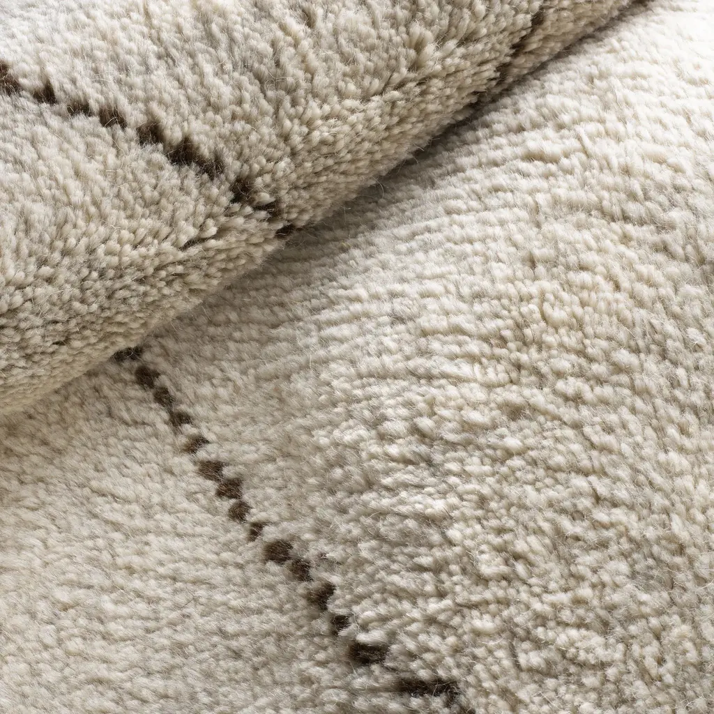 Large-scale diamonds, stark and black, quiver across the soft Ivory ground of this divine wool rug as if hand-drawn. With a sophisticated, subtle geometry that is densely hand knotted and shorn to lush, plush perfection, this rug exudes maximum comfort and understated modern style.