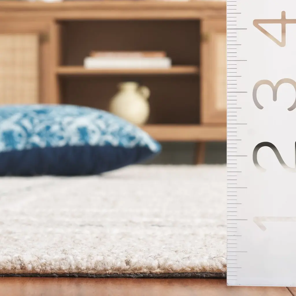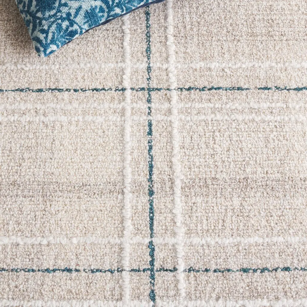 Elevate your home decor with this elegant area rug. Measuring 4 feet by 6 feet, its Small Rectangle shape with a 3/8 inch height fits seamlessly in any room. The subtle Beige and Blue color palette exudes sophistication, enhancing your space with a touch of modern style. Crafted with care in India, this Hand Tufted rug combines 80 percent Wool and 20 percent Cotton, offering a delightful blend of comfort and texture. With its versatile no-pattern design, this rug effortlessly complements your existing decor while adding warmth and style. Transform your living room, bedroom, or office with this exquisite piece that perfectly balances functionality and design. Discover the charm it brings to your home today.
