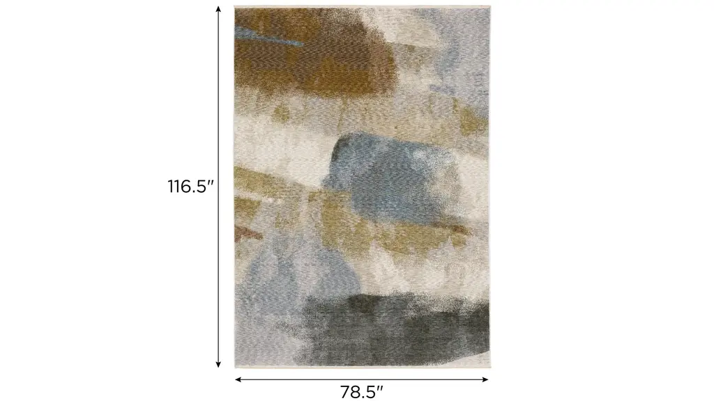The pairing of jewel tones and neutrals with small, incorporated fringe makes a striking statement in the Dawson area rug. The Contemporary and Modern style, and low-profile construction of this machine-woven rug bring sophistication and bold fluidity to any room in your home.