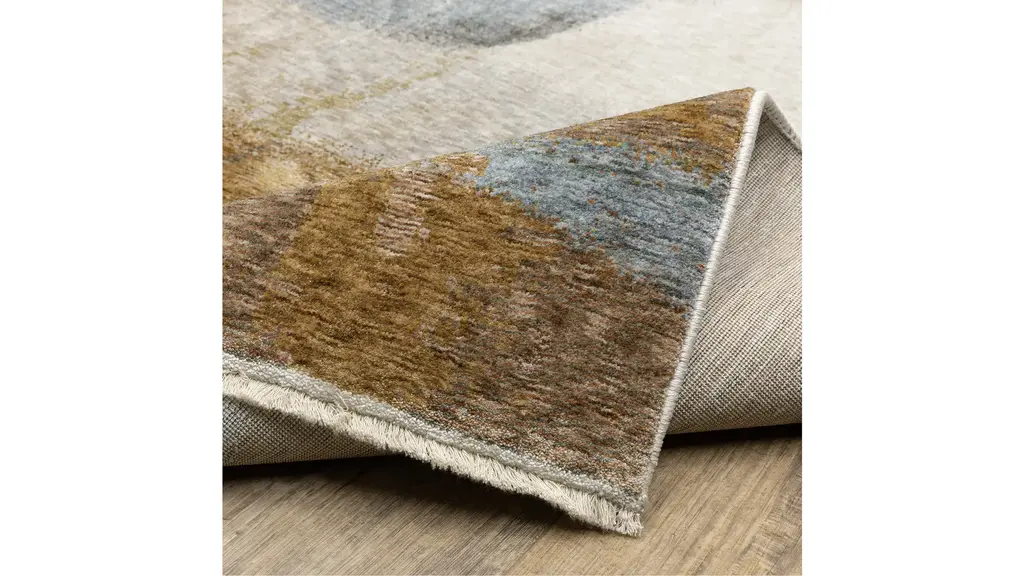 The pairing of jewel tones and neutrals with small, incorporated fringe makes a striking statement in the Dawson area rug. The Contemporary and Modern style, and low-profile construction of this machine-woven rug bring sophistication and bold fluidity to any room in your home.