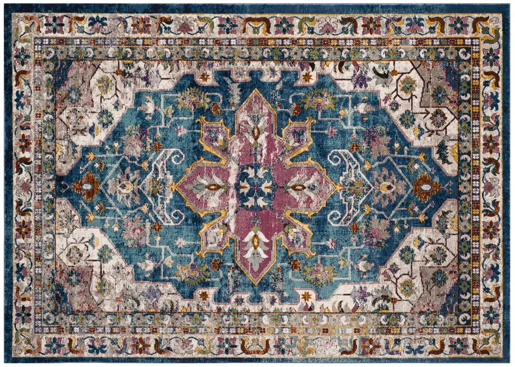 Updating a traditional medallion design with a pronounced abrash and bold color palette, this rug is made of durable polypropylene, a fade-resistant, easy-to-clean material that can stand up to the everyday wear and tear of areas that see heavy foot traffic. We recommend a rug pad to extend the life of your rug and keep it securely in place.