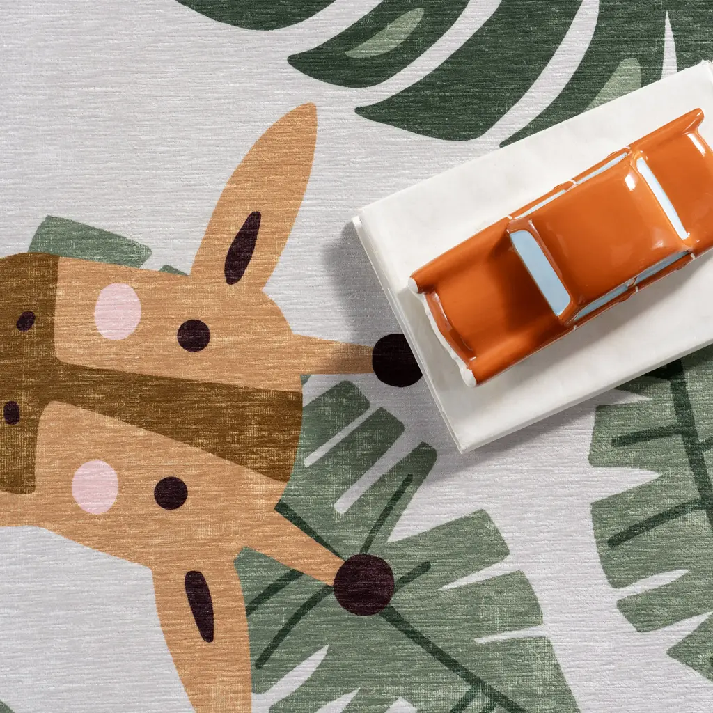 Debra Kids Spill Proof Washable Jungle Friends Rug | White Multicolor - 3' X 5'