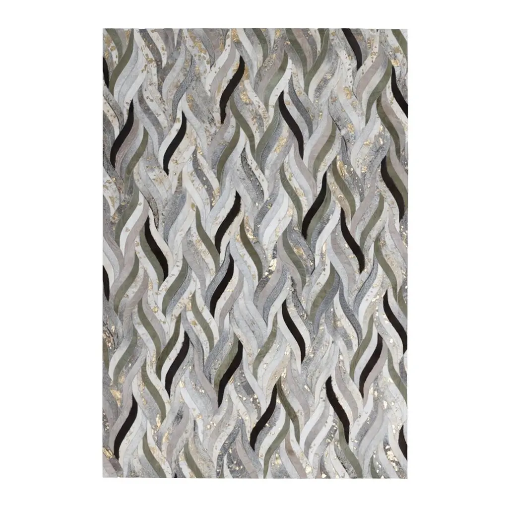 Decadent New Customizable Curvo Gray And Gold Cowhide Area Floor Rug Large